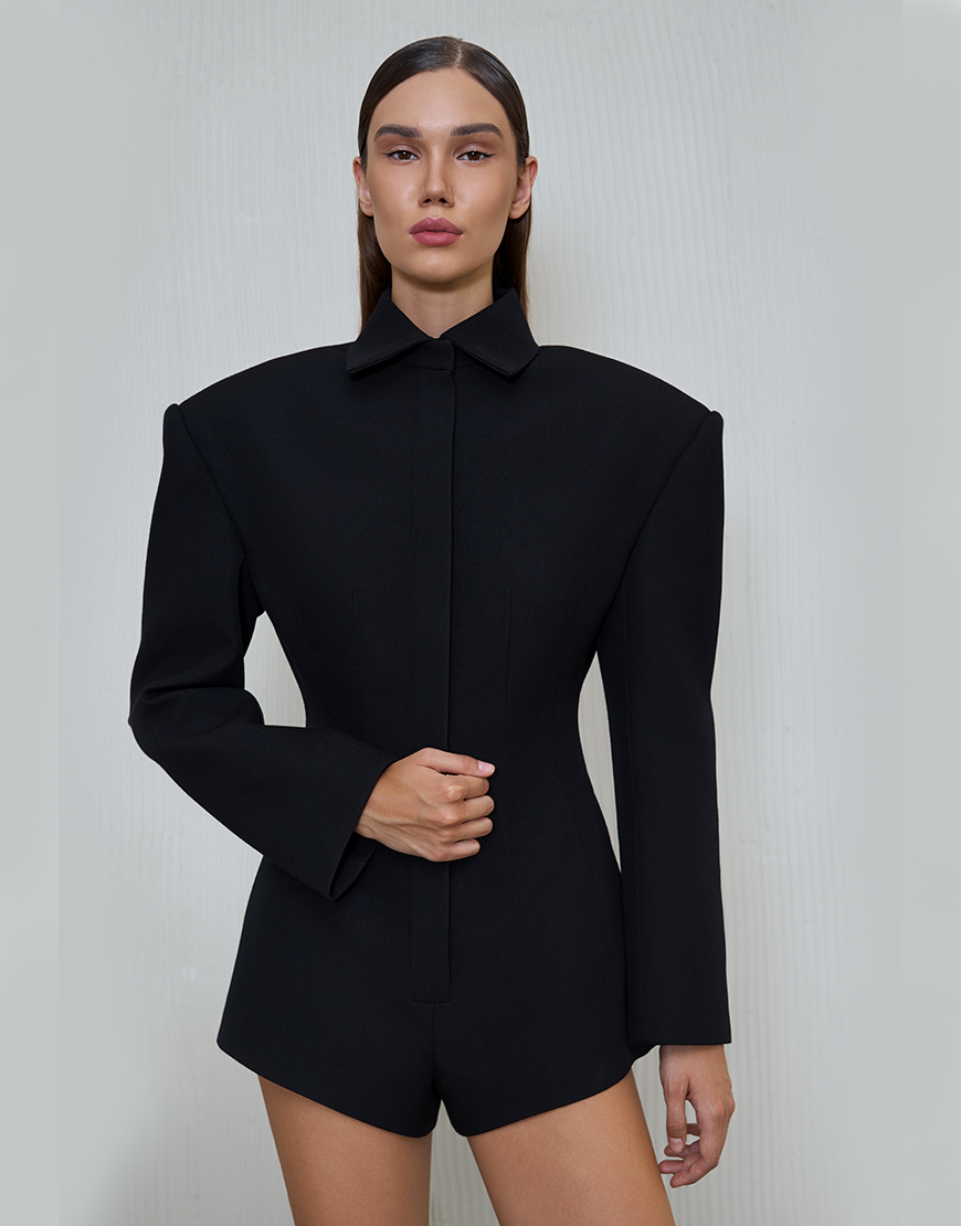 Доставка впродовж 2-5 робочих днівОднобортний комбінезон з широкими плечима, який щільно сидить на талії