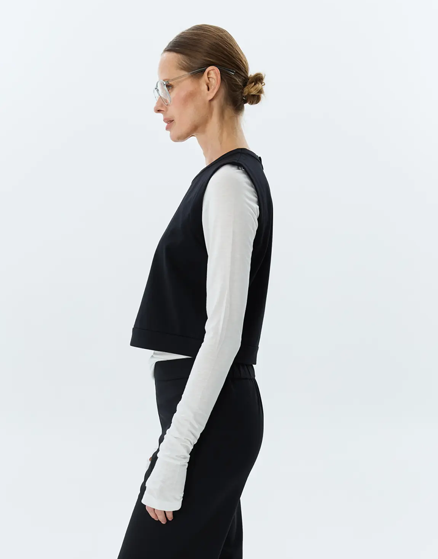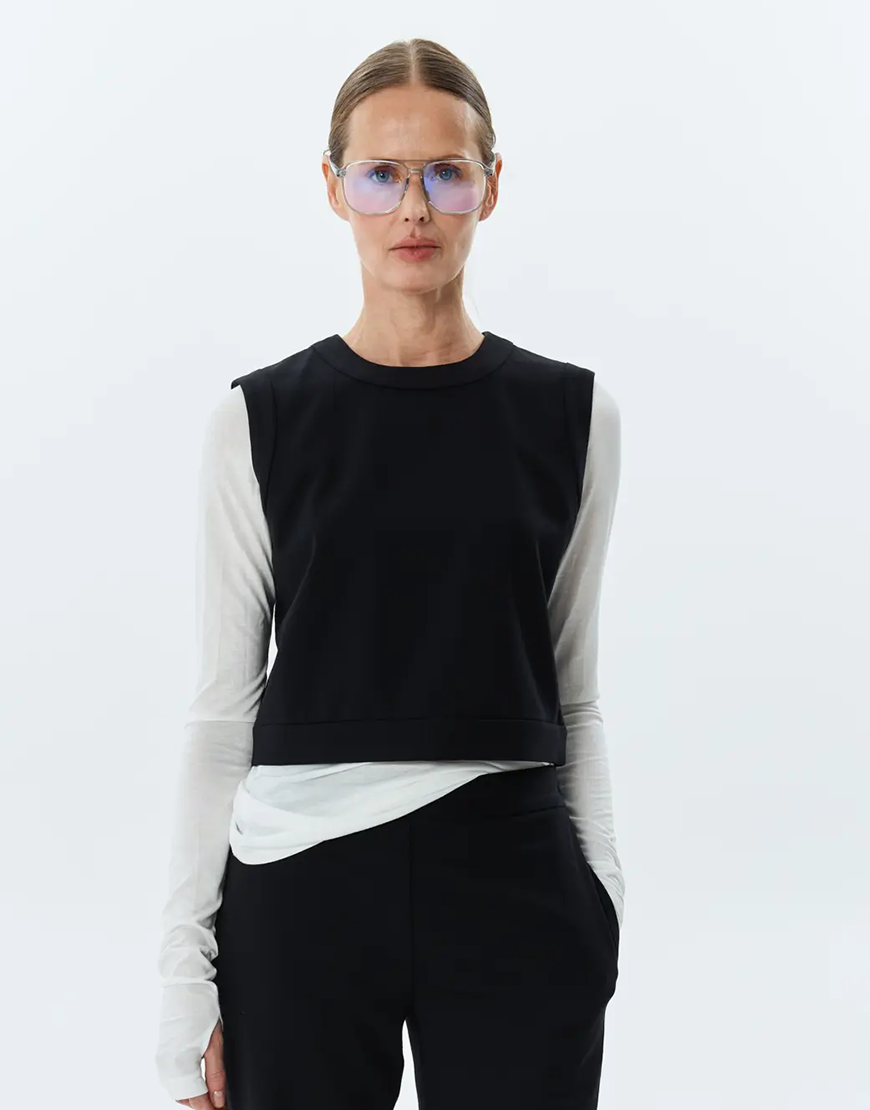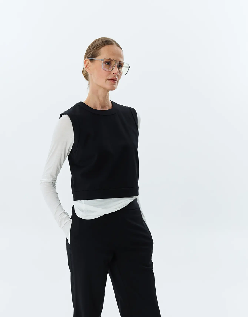 Доставка впродовж 2-14 робочих днівСтильний базовий топ чорного кольору — універсальна річ у гардеробі. Виконаний із приємної до тіла тканини, має прямий крій та округлу горловину. Завдяки лаконічному дизайну легко поєднується як із джинсами чи шортами для повсякденного образу, так і зі спідницею або класичними брюками для більш елегантного стилю.