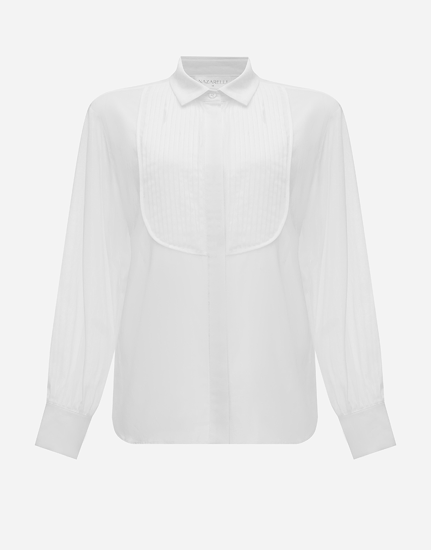 Спереду – манишка, що складається з множини дрібних складок одного розміру.