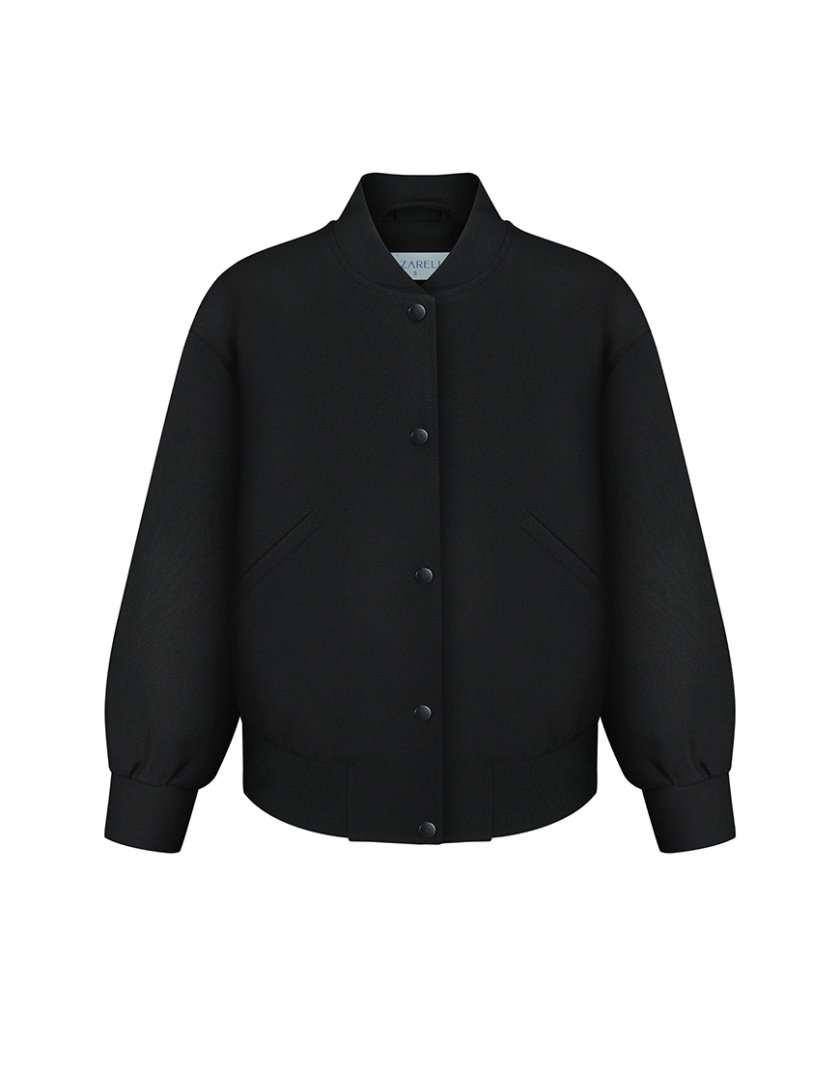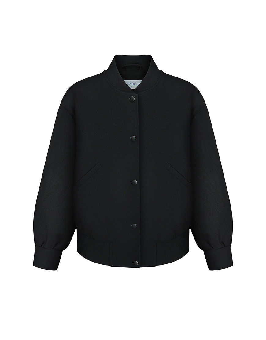 Доставка впродовж 2-14 робочих днівВиконаний із більш щільної костюмної тканини в рубчик. Підкладка – більш щільна, гладка. Крой вільний, спущене плече. Спереду бомбера кишені з листочкою; на підкладці лівої половинки – внутрішня кишеня.
