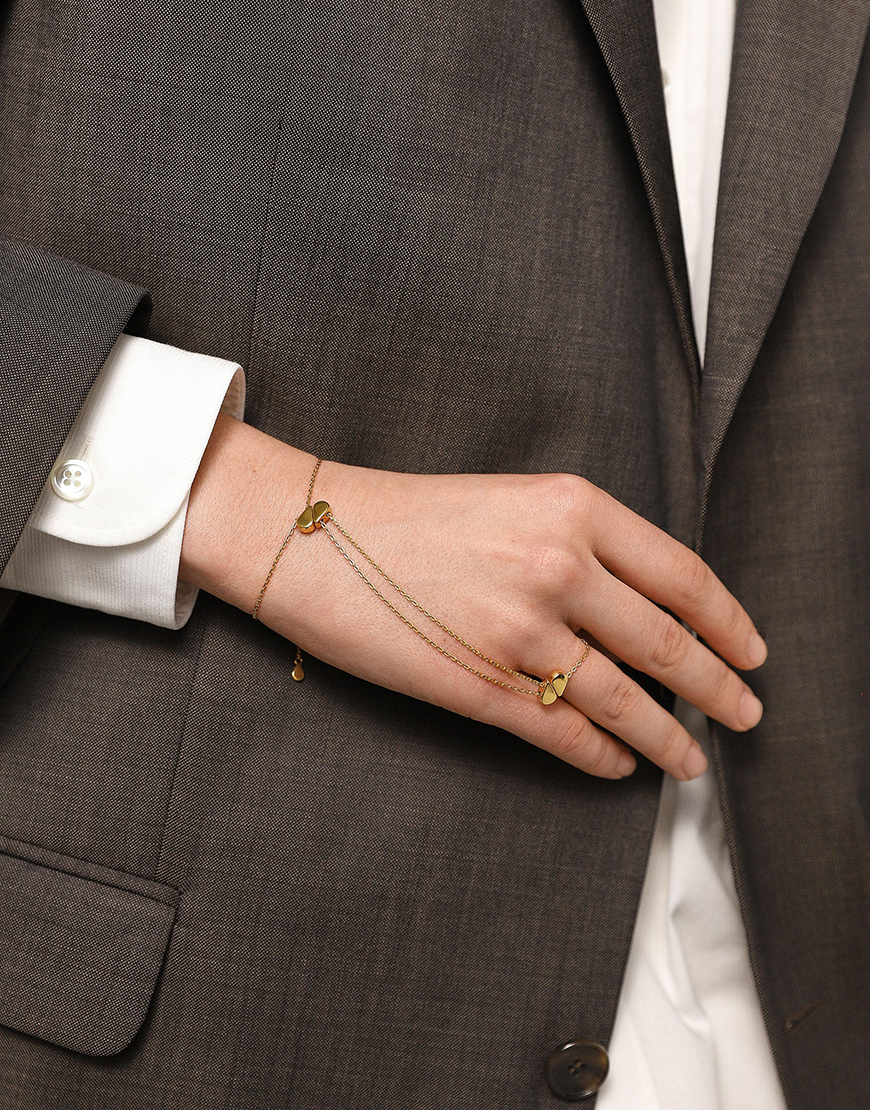 2. Слейв браслет, затягнутий лише біля запʼястя чи по центру долоні
