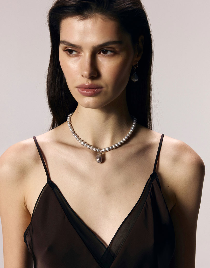 Доставка впродовж 3-5 робочих днівКольє з натуральних річкових перлин сірого кольору. Кулон – натуральна барокова перлина сфірого кольору. *може незначно відрізнятися від представленної на фото за формою в силу свого природнього походження Застібка та фурнітура- срібло 925. Основа – спеціальний ювелірний трос, який тримає форму, при цьому приймаючи форму вигинів тіла, що забезпечує гарну посадку