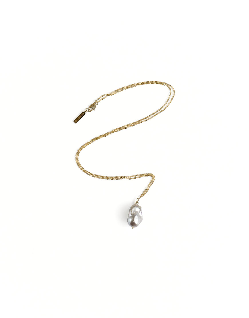 Доставка впродовж 3-5 робочих днівКулон з бароковою перлиною сірого кольору на довгому ланцюжку.