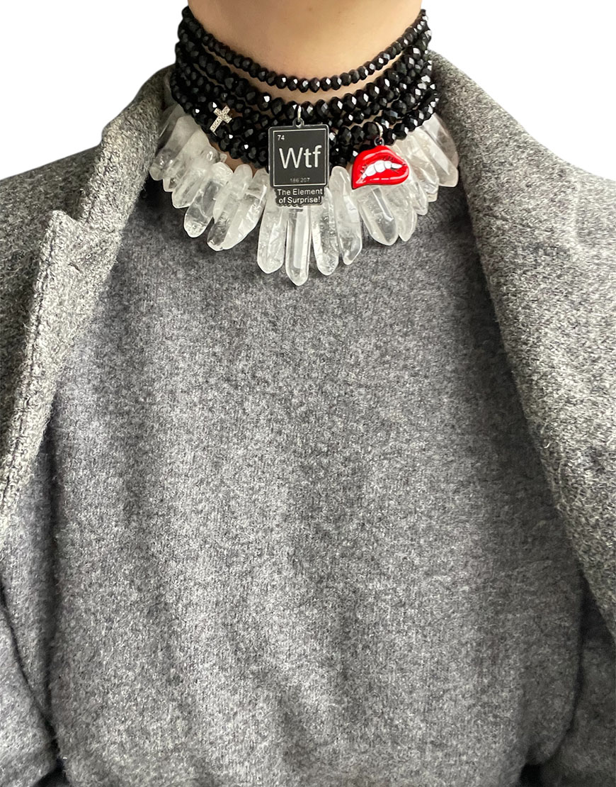 Доставка впродовж 2-5 робочих днівЧокер з чеського скла, гірського кришталю та декоративними підвісками.Трошки агресивне, але і витончене водночас.
