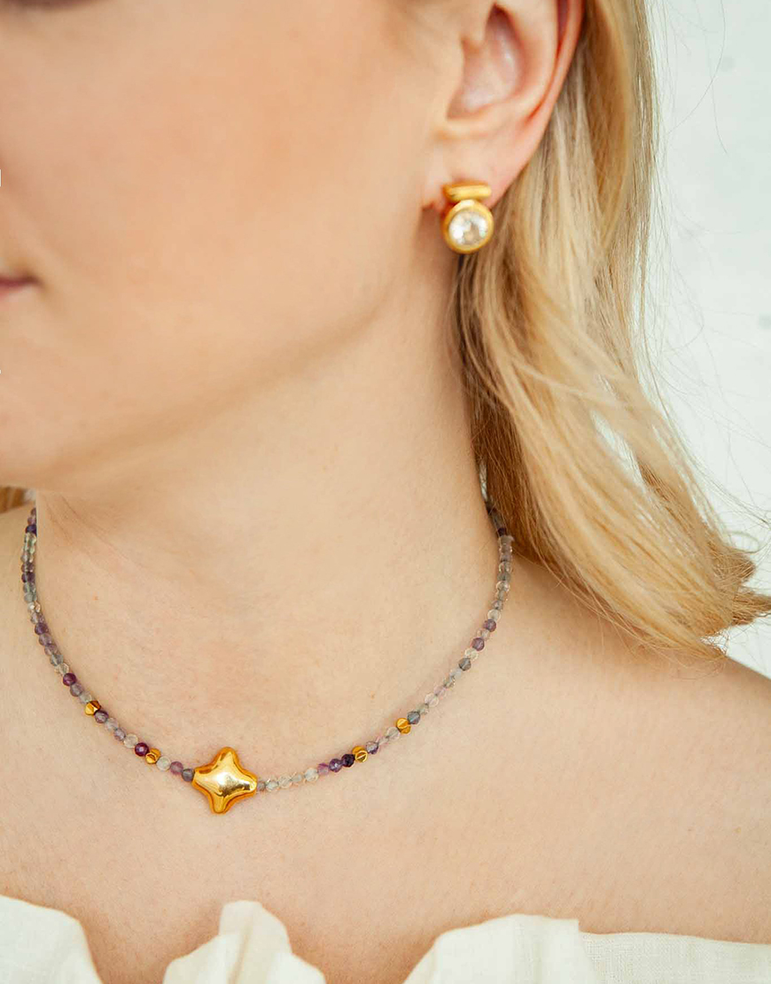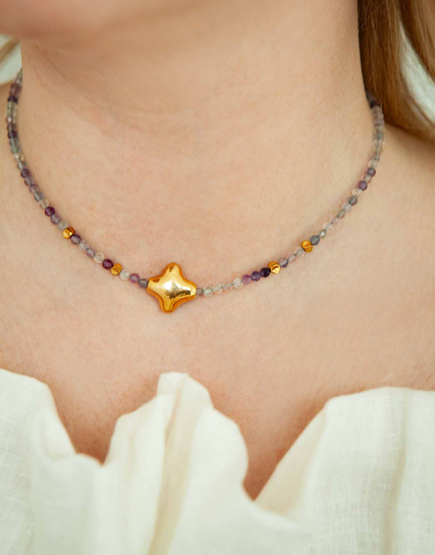Кольє Stella з флюоритом та позолоченою зіркою