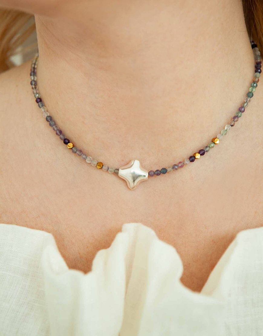 Кольє Stella Silver з флюоритом та срібною зіркою