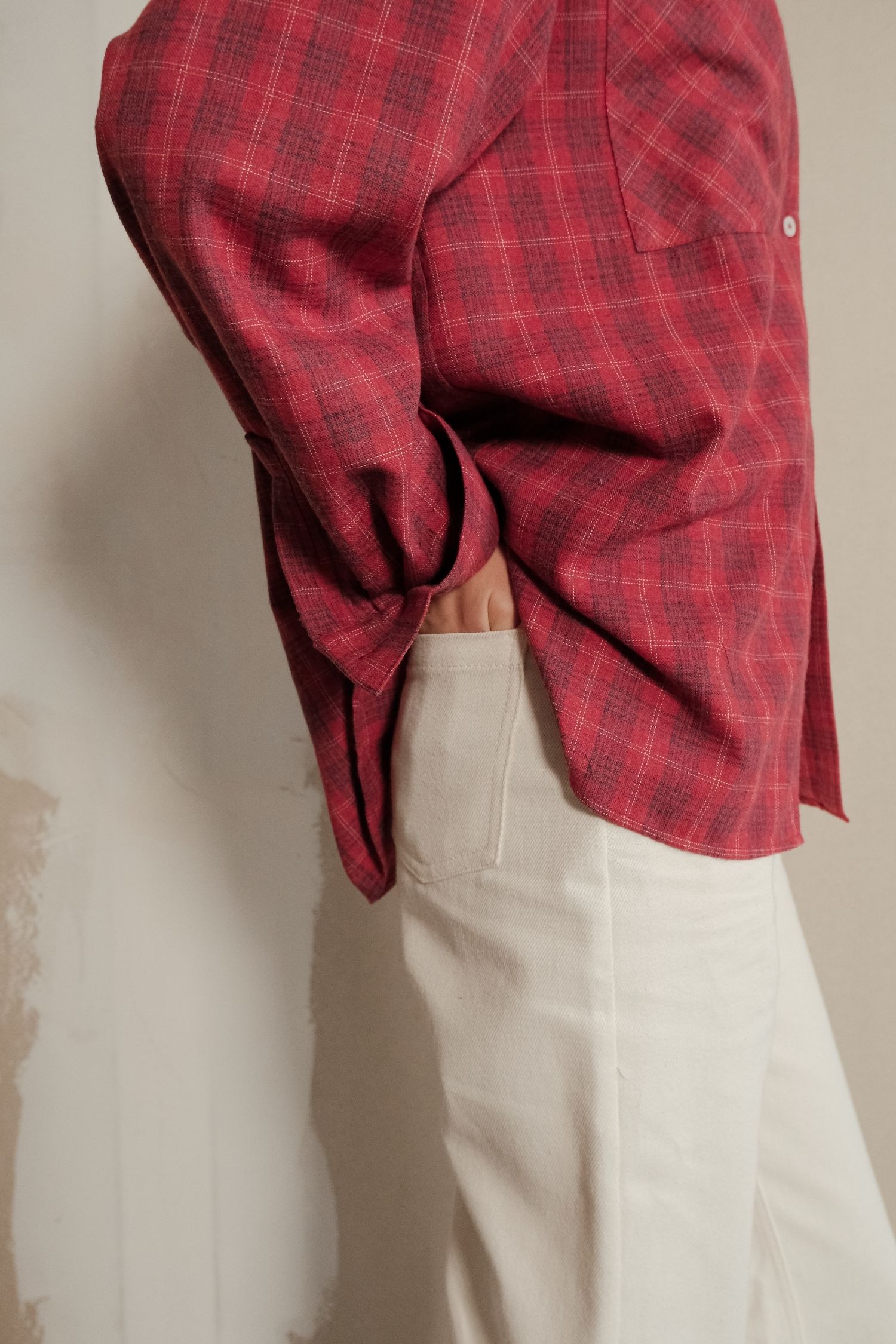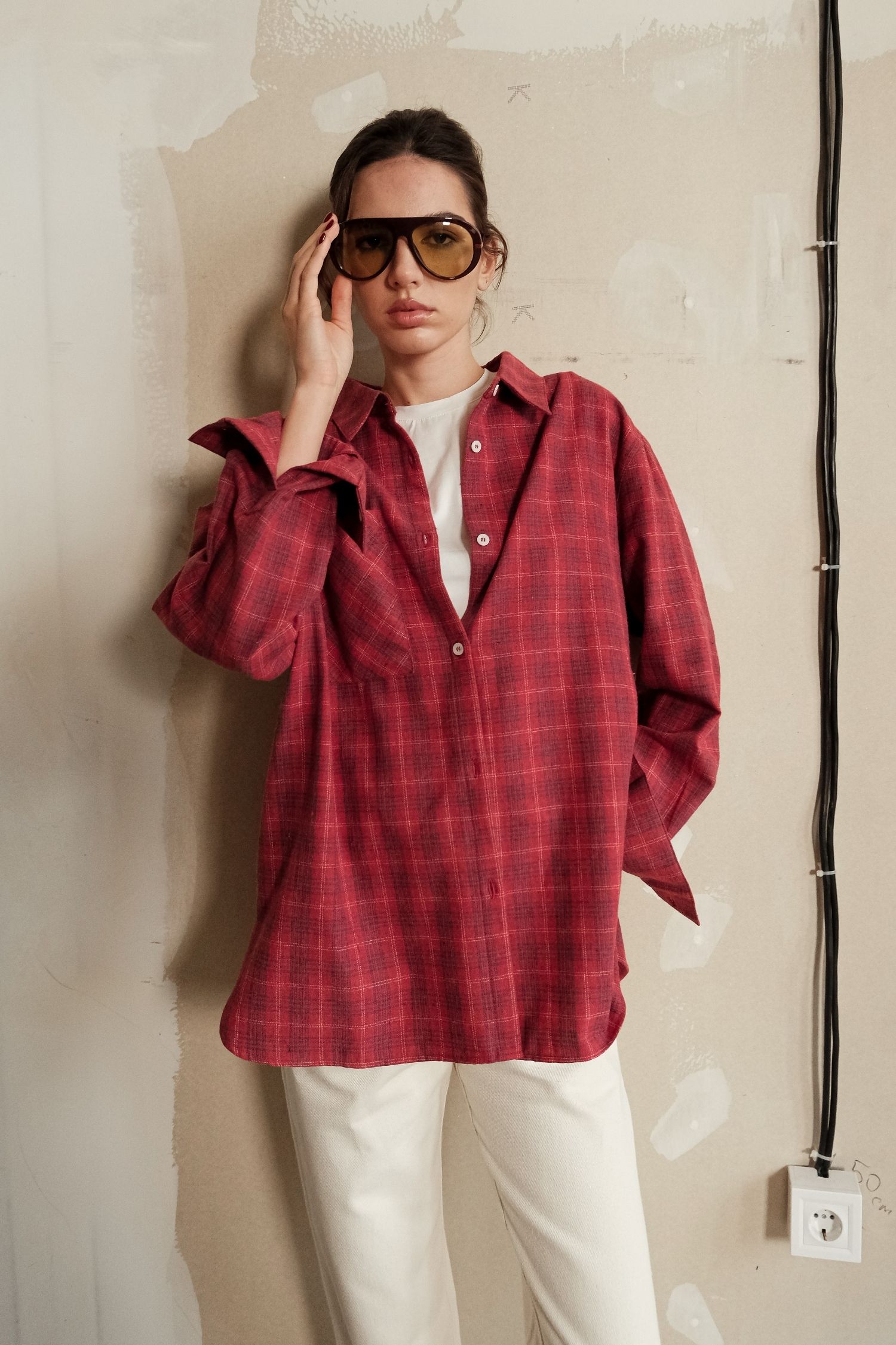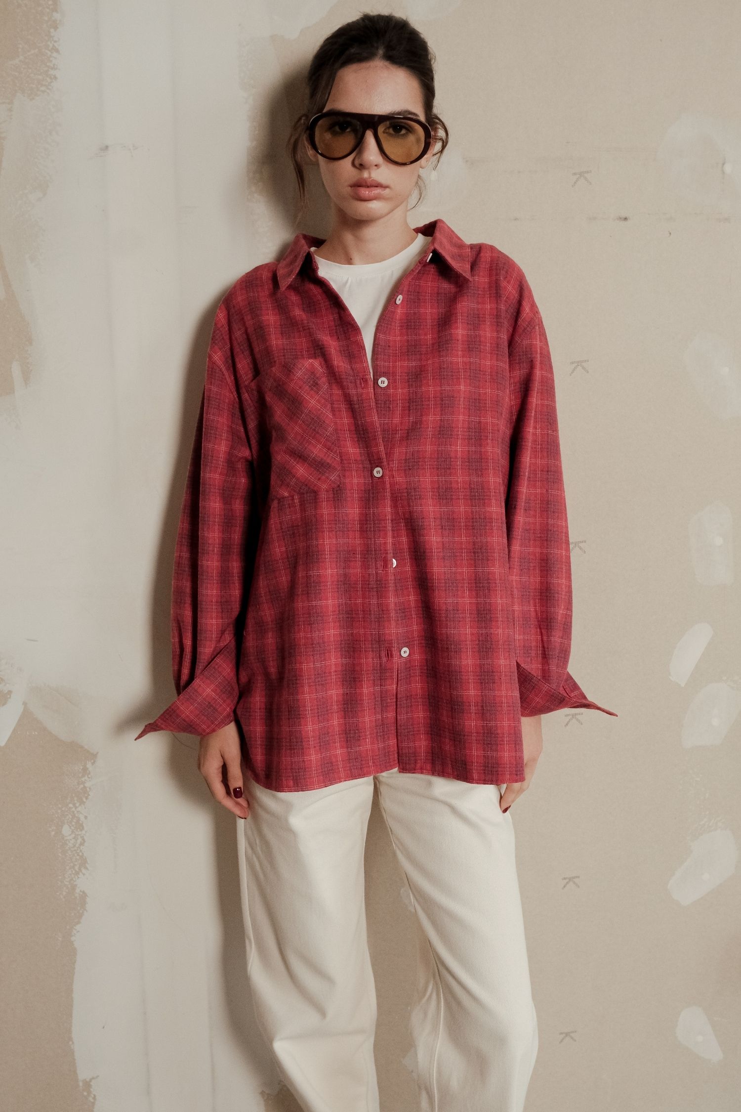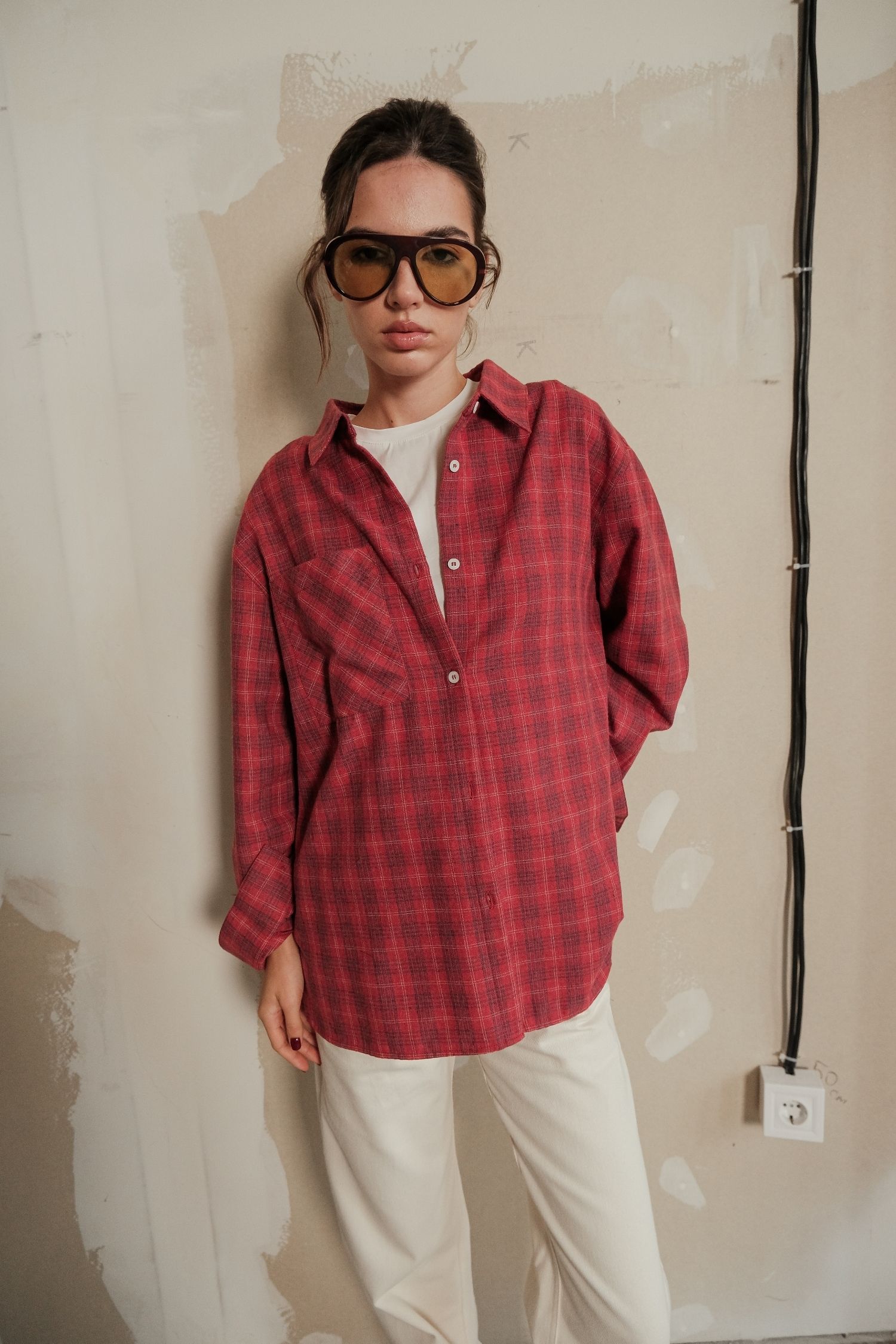 ДоставкаЖіноча сорочка оверсайз із накладною кишенею.