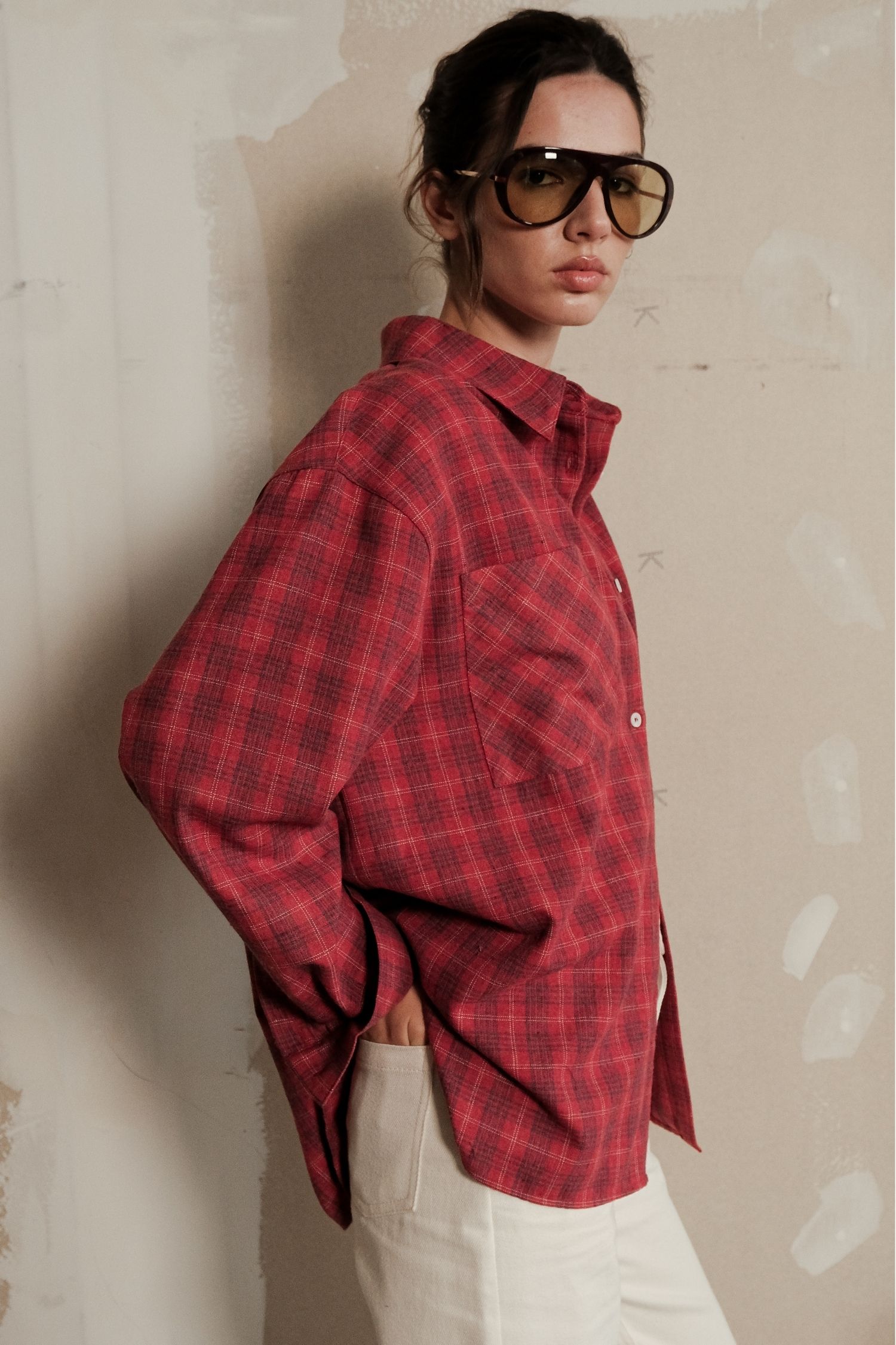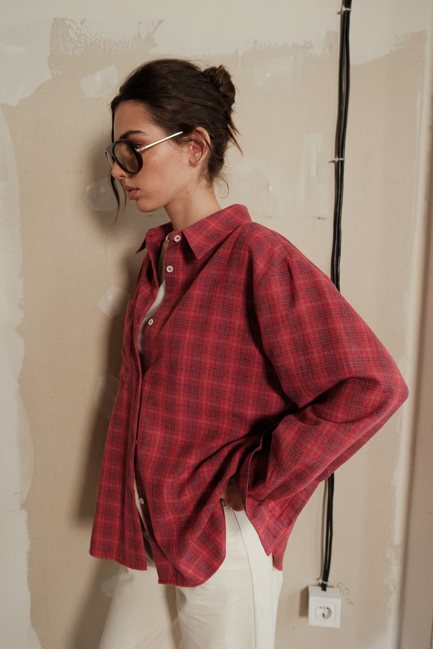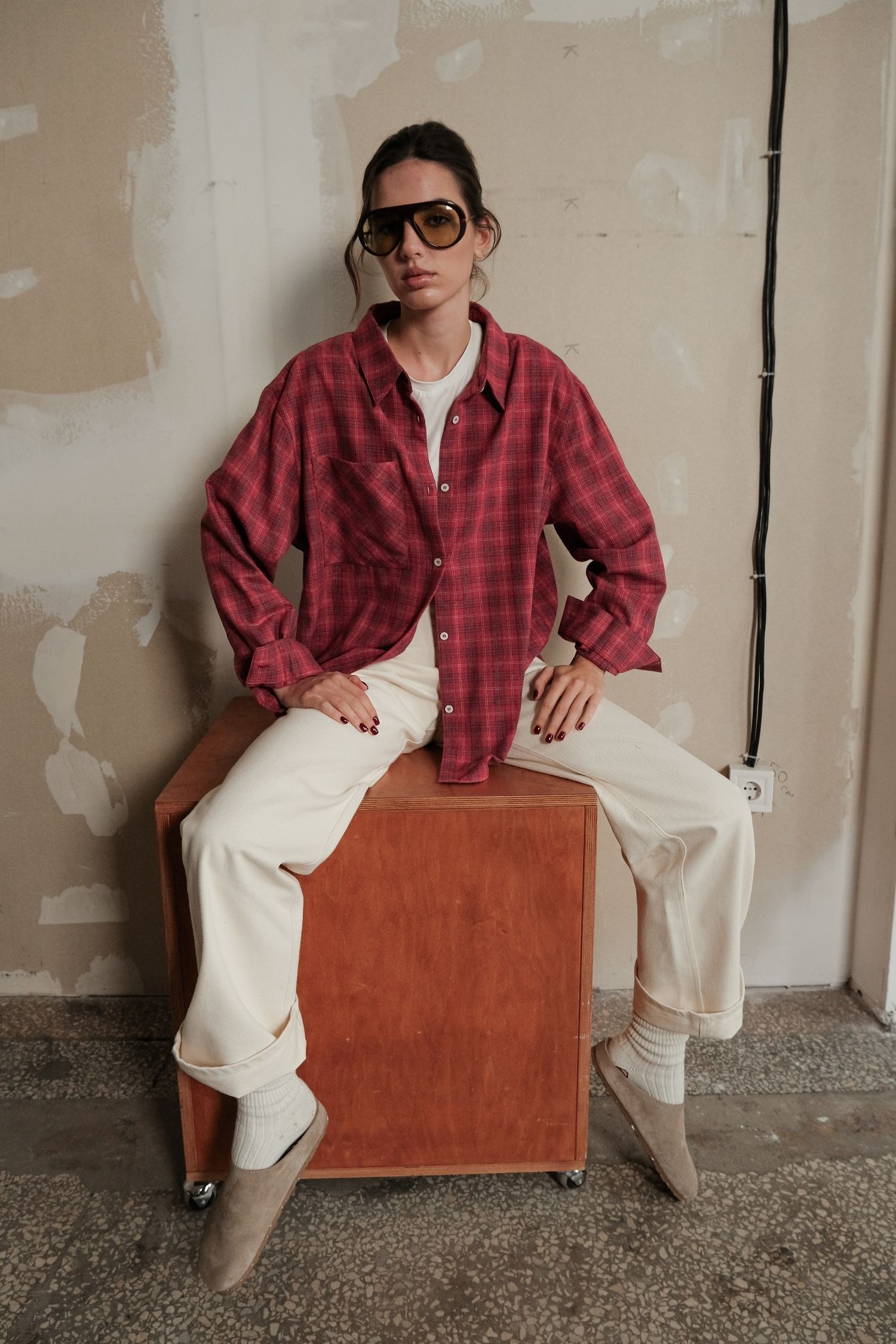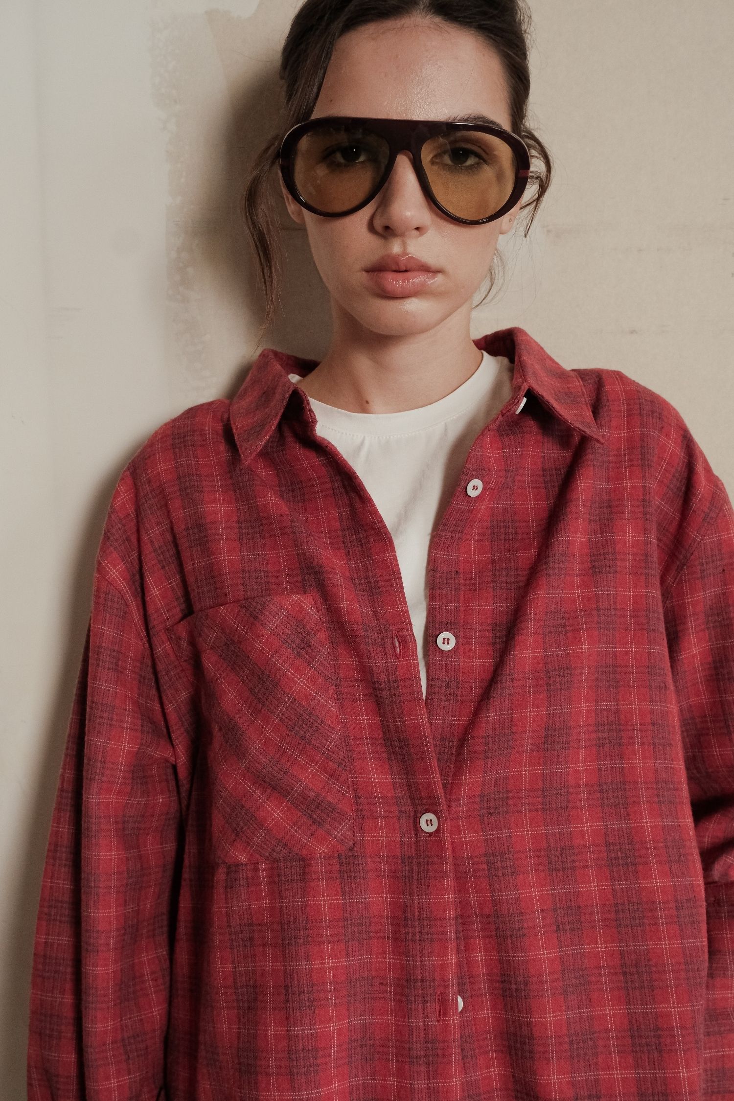 ДоставкаЖіноча сорочка оверсайз із накладною кишенею.