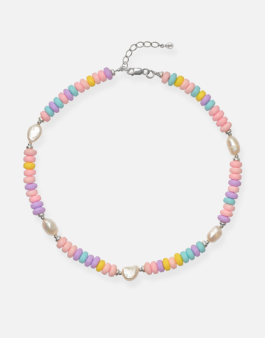 Доставка впродовж 2-5 робочих днівКольє Wanderlust створене з пастельних намистин із полімерної глини, доповнених вставками з натуральних перлин та фурнітурою зі стерлінгового срібла 925. Поєднання м’яких кольорів і перлових акцентів робить прикрасу яскравою та літньою.