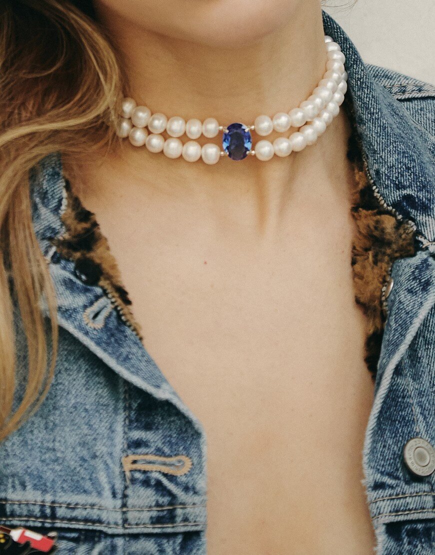 Доставка впродовж 2-5 робочих днівЦей ексклюзивний чокер Diana з лімітованої колекції від Silver Stories, натхненний принцеcою Діаною та її неперевершеним відчуттям стилю. Її любов до делікатних ювелірних виробів з перлин спонукала нас відтворити перлинові чокер та каблучки з блискучими камінцями в честь Діани і зануритися в її епоху. Чокер виготовлений нашими майстрами з прісноводних перлин, насичений синім кубічним цирконієм по центру, прикрашений фурнітурою зі срібла 925. Наші кольє регулюються у довжині на 5 см.