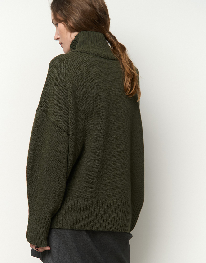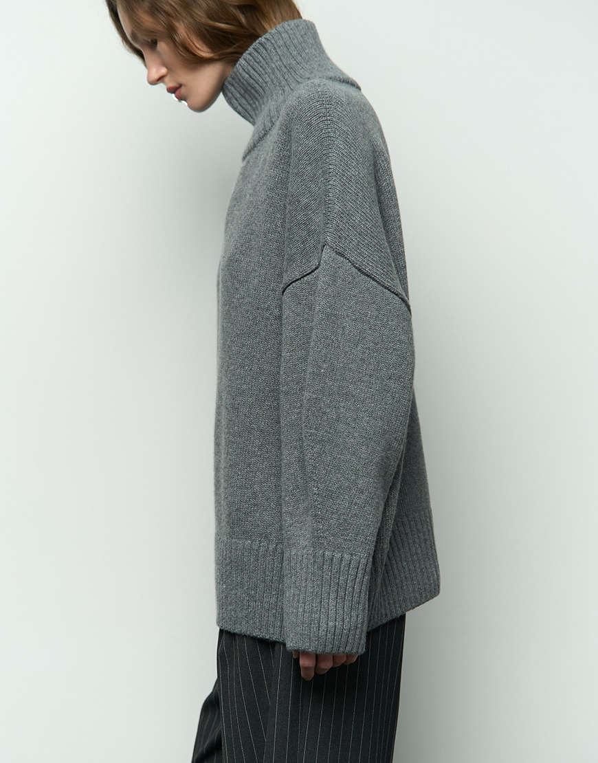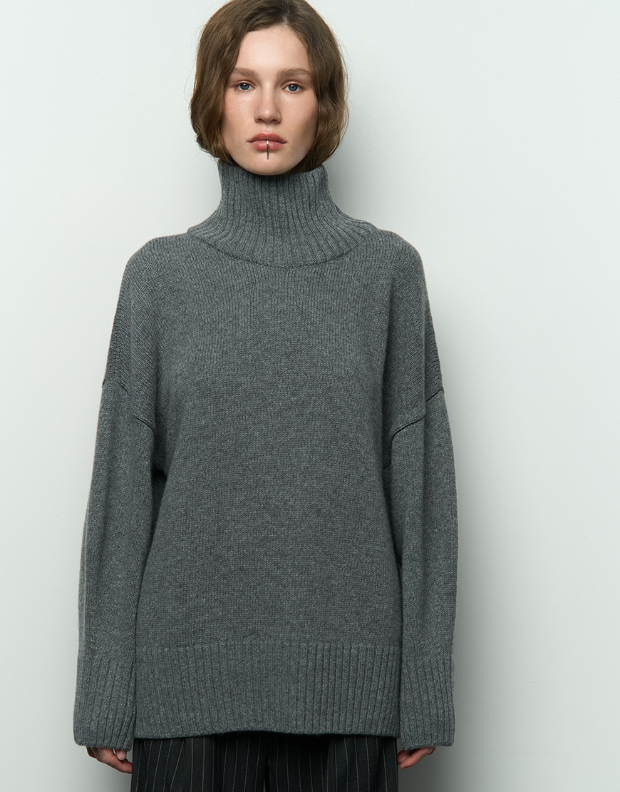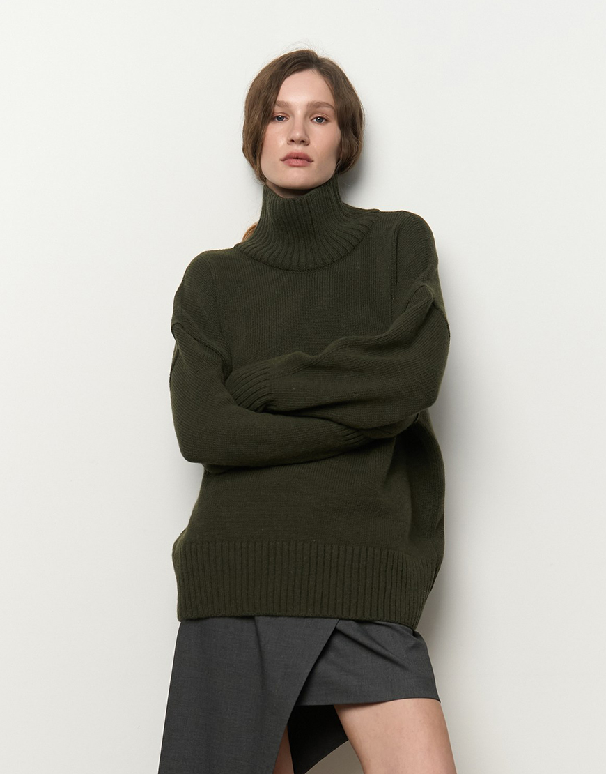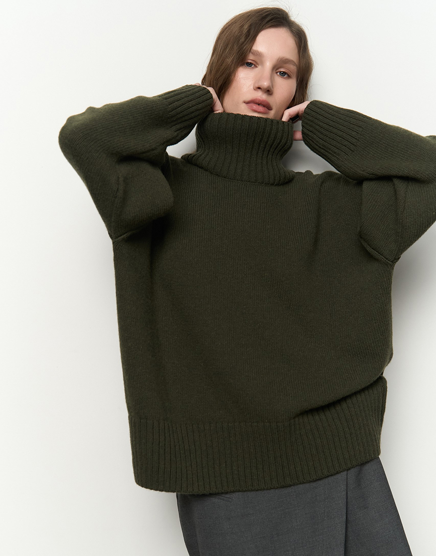 Mellow з високою горловиною. Матеріал цієї моделі – високоякісна вовна з невеликим відсотком віскози та поліаміду, завдяки чому гарно виріб тримає форму, має чудові теплоізоляційні властивості та гарну зносостійкість. Светр виконаний гладкою