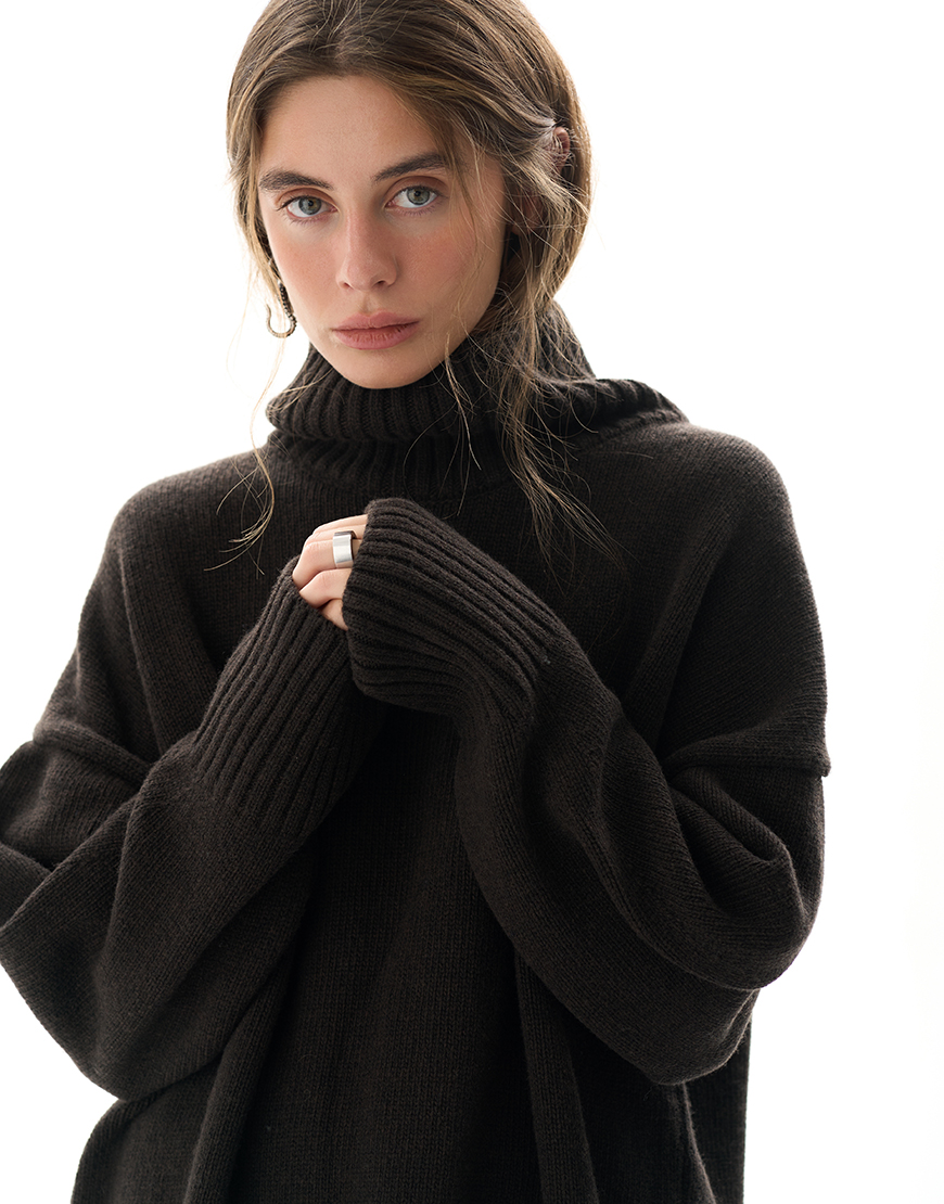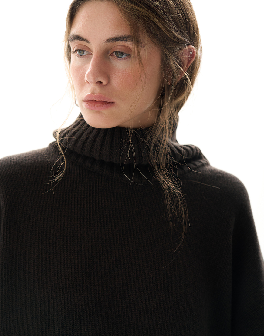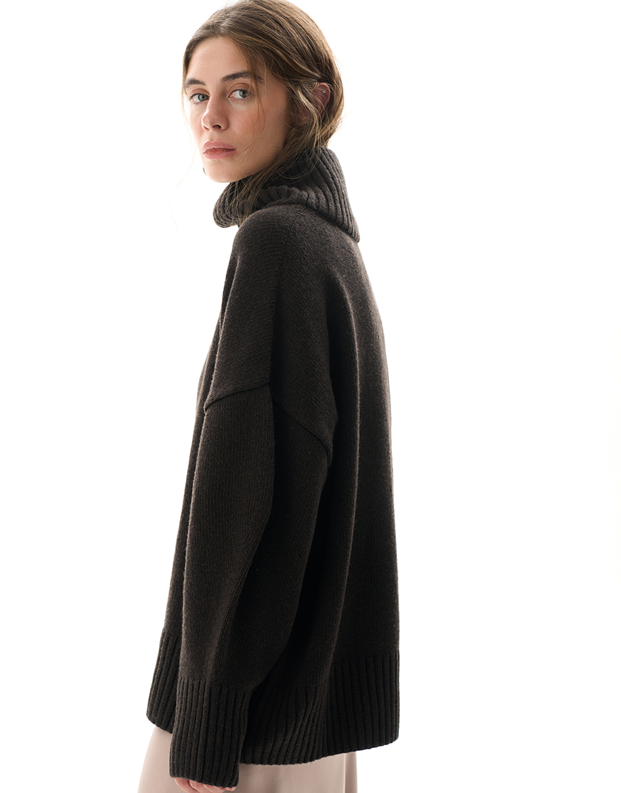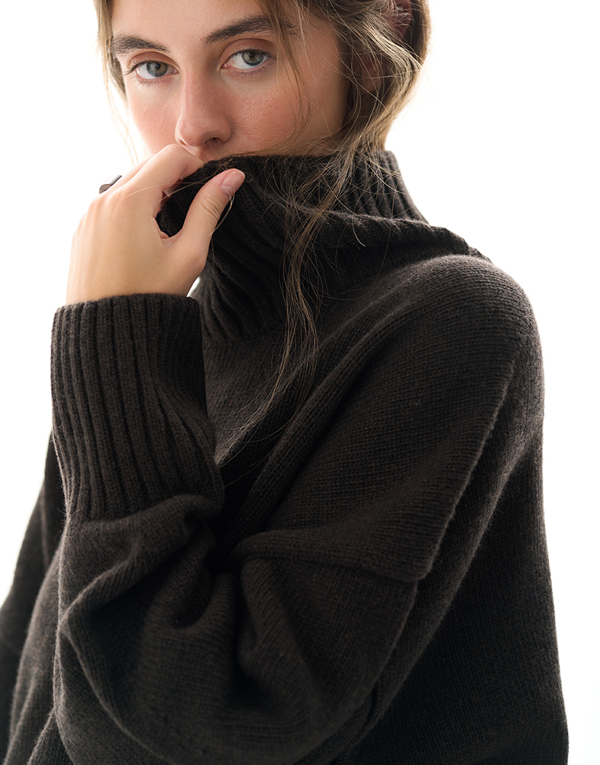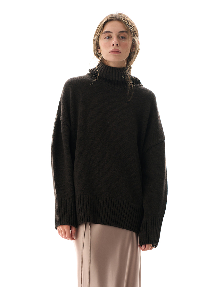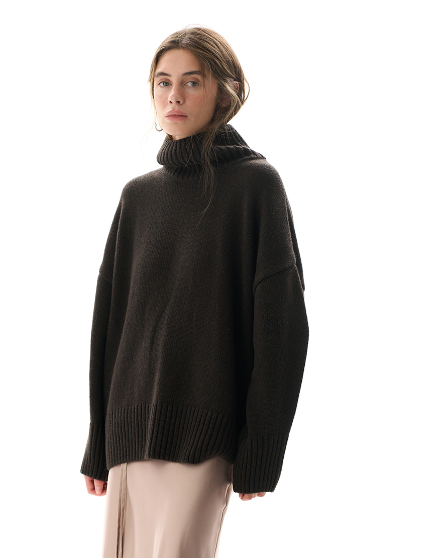 Mellow з високою горловиною. Матеріал цієї моделі – високоякісна вовна з невеликим відсотком віскози та поліаміду, завдяки чому гарно виріб тримає форму, має чудові теплоізоляційні властивості та гарну зносостійкість. Светр виконаний гладкою