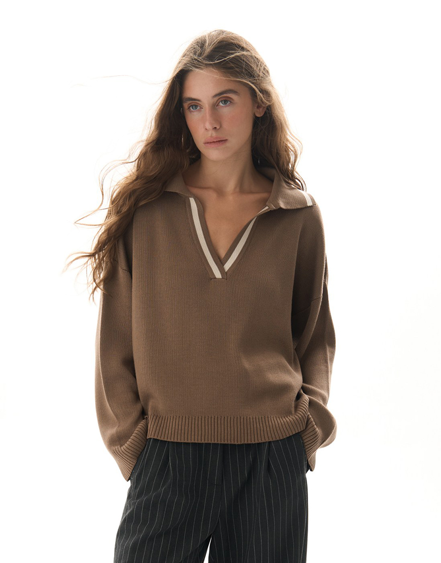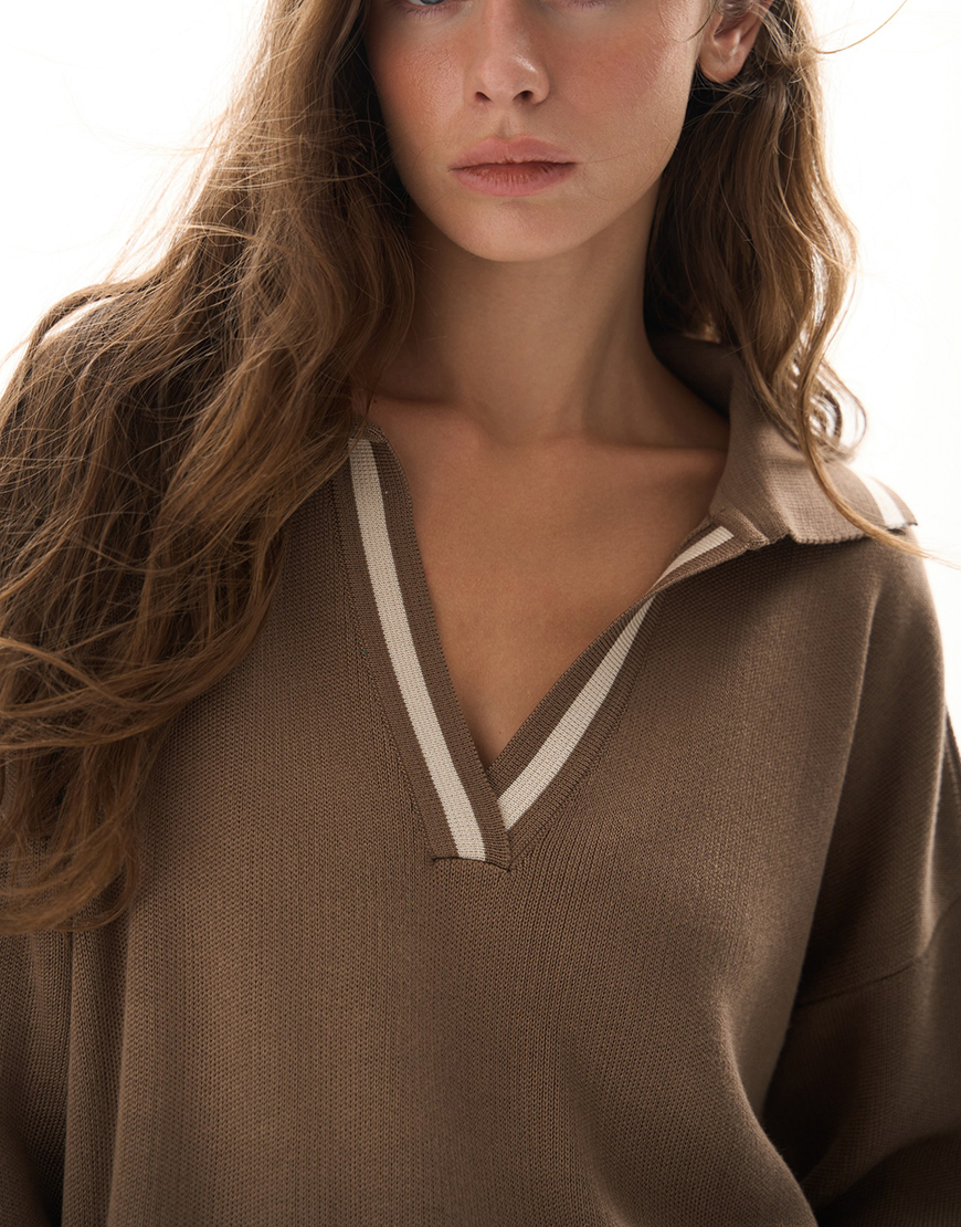 Доставка протягом 2-5 робочих днівПоло вільного крою з мʼякими спущеними плечима та прямим силуетом. Виготовлений з приємної на дотик віскозної пряжі, що забезпечує комфорт та тепло.