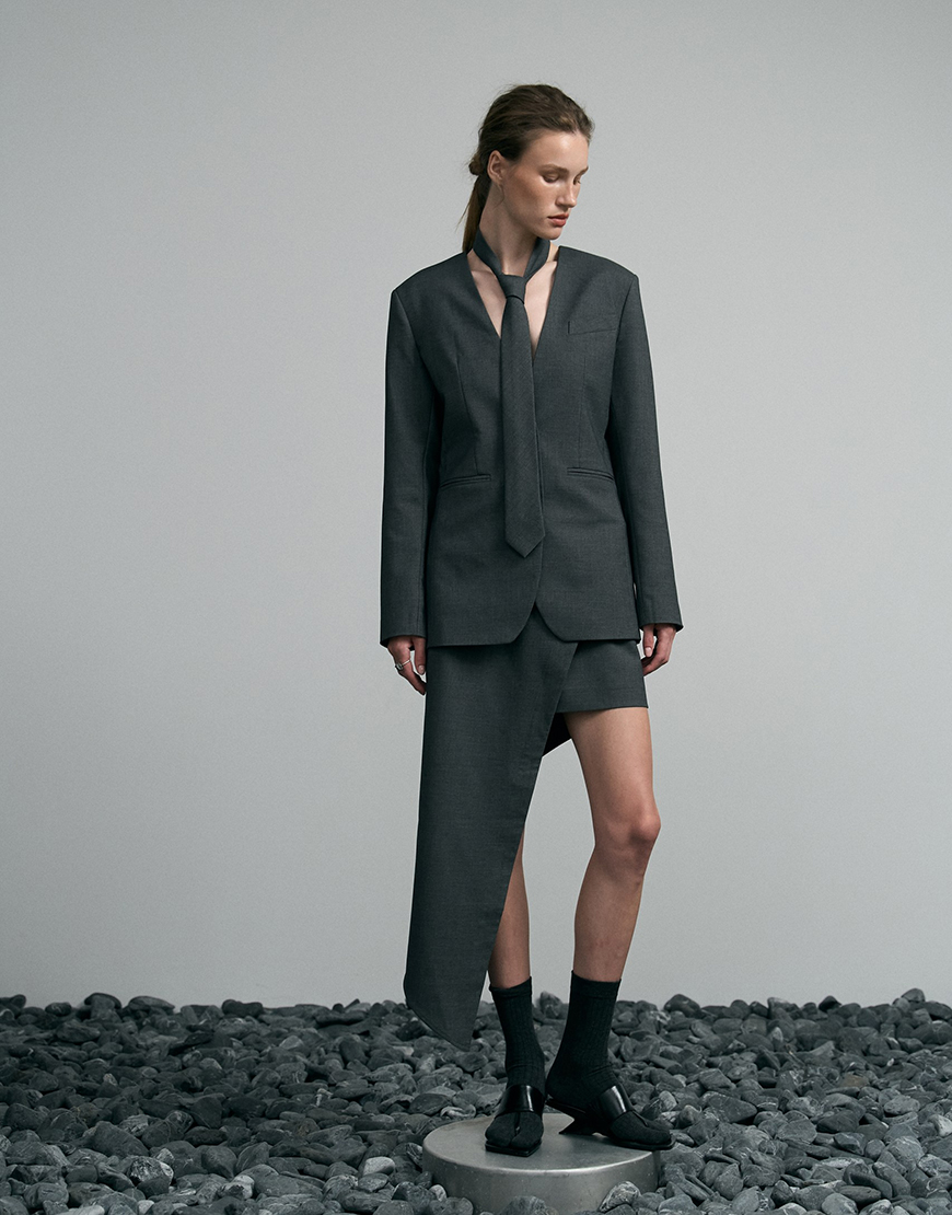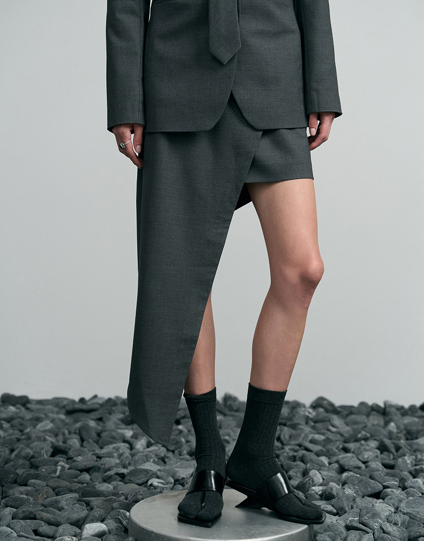 Доставка протягом 2-5 робочих днівСпідниця на запах асиметричного крою ARC з костюмної тканини темно-сірого кольору. Застібка на гудзики надійно фіксує драпірування, що красиво спадає вздовж силуету та видовжує його. Виріб можна стилізувати самостійно з різноманітними верхами, а також використовувати як баску з прозорими спідницями максі та класичними палаццо.