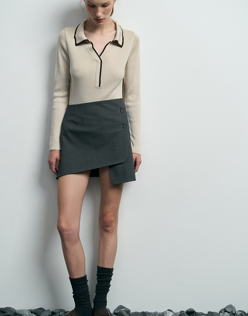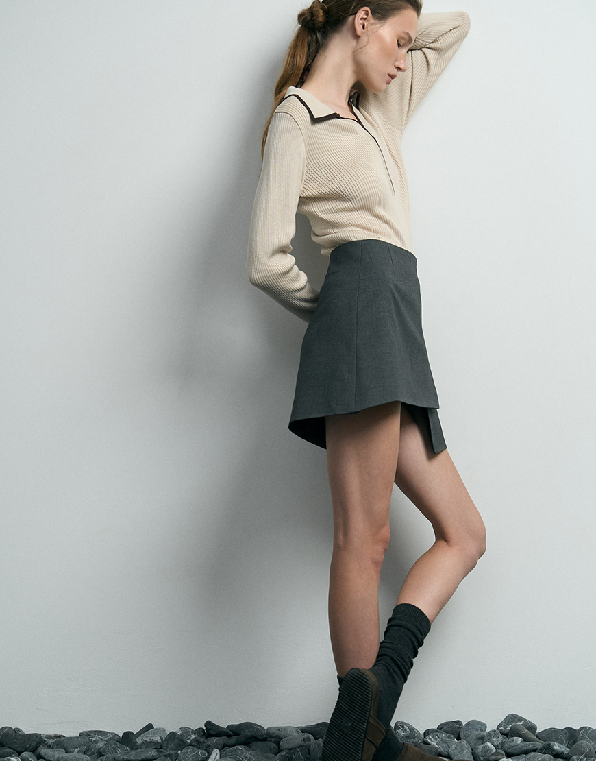 Доставка протягом 2-5 робочих днівМіні BALANCE оригінального крою з костюмної тканини темно-сірого кольору.