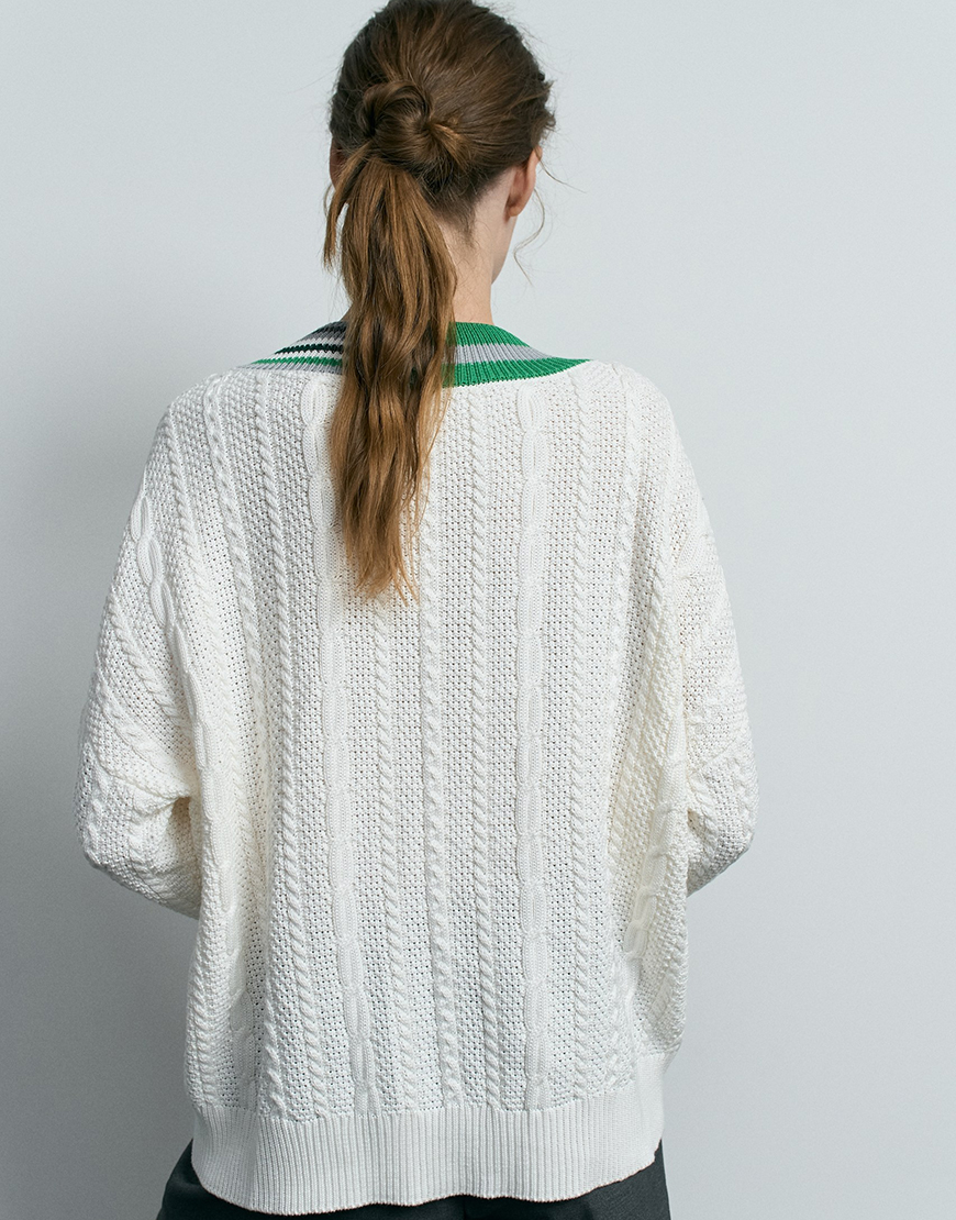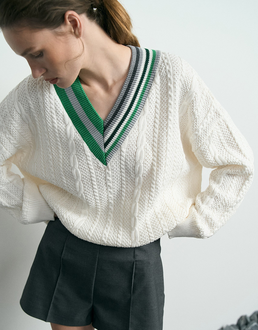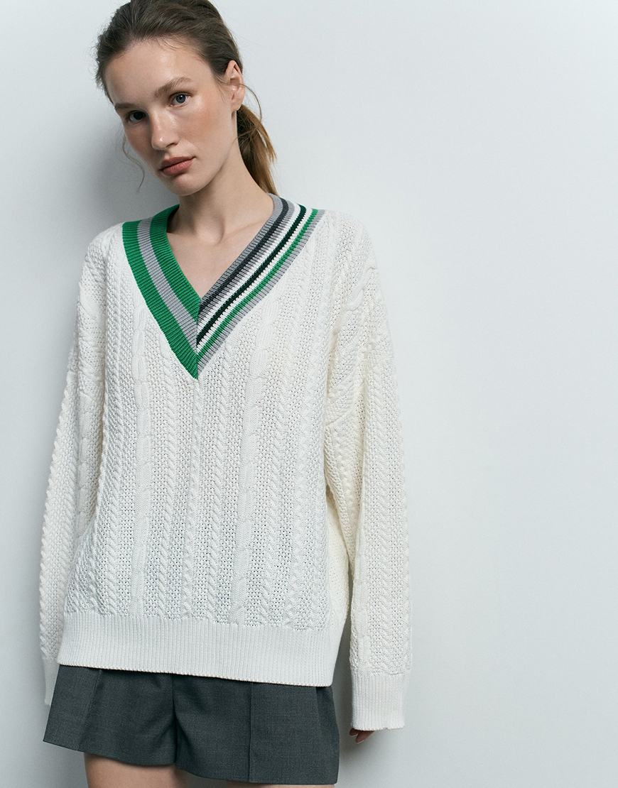 Доставка протягом 2-5 робочих днівСветр вільного крою, виконаний у плетінні «коси» з акцентною горловиною мис, стане чудовим вибором для створення стильного та затишного образу.