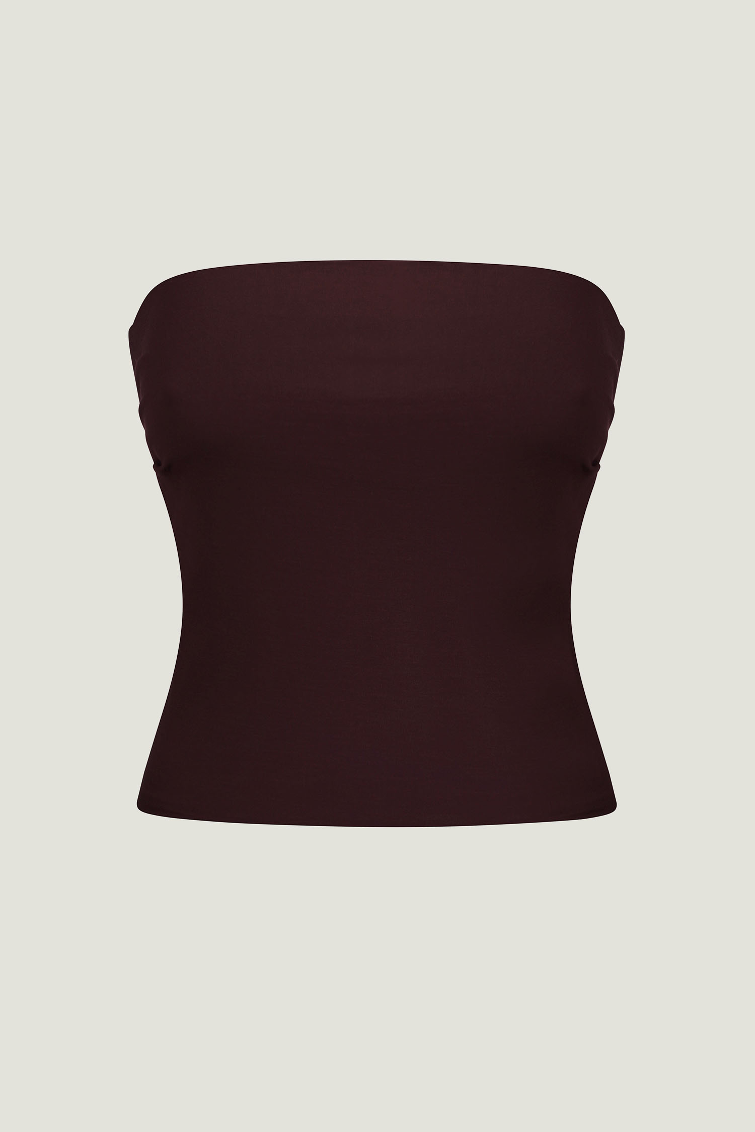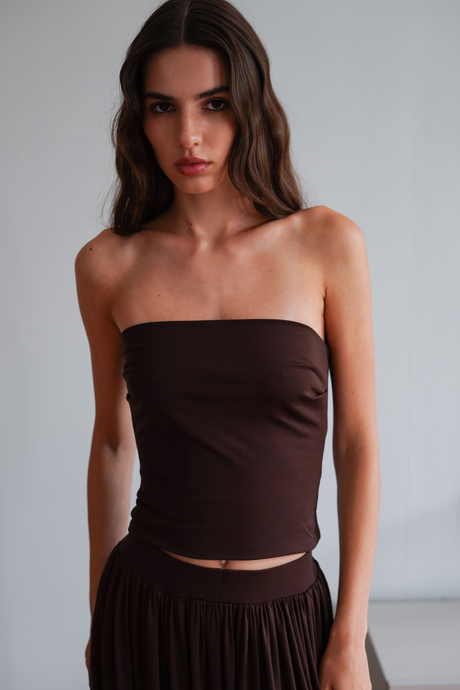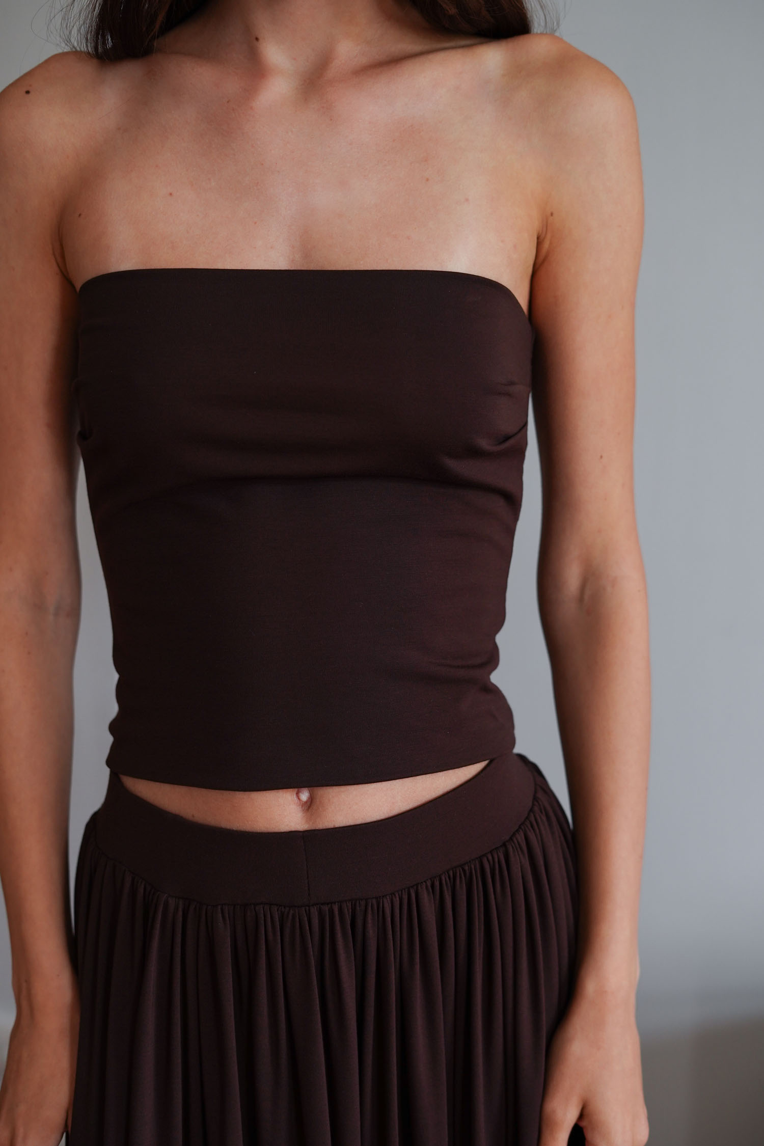 Подовжений жіночий топ-бандо шоколадного відтінку.