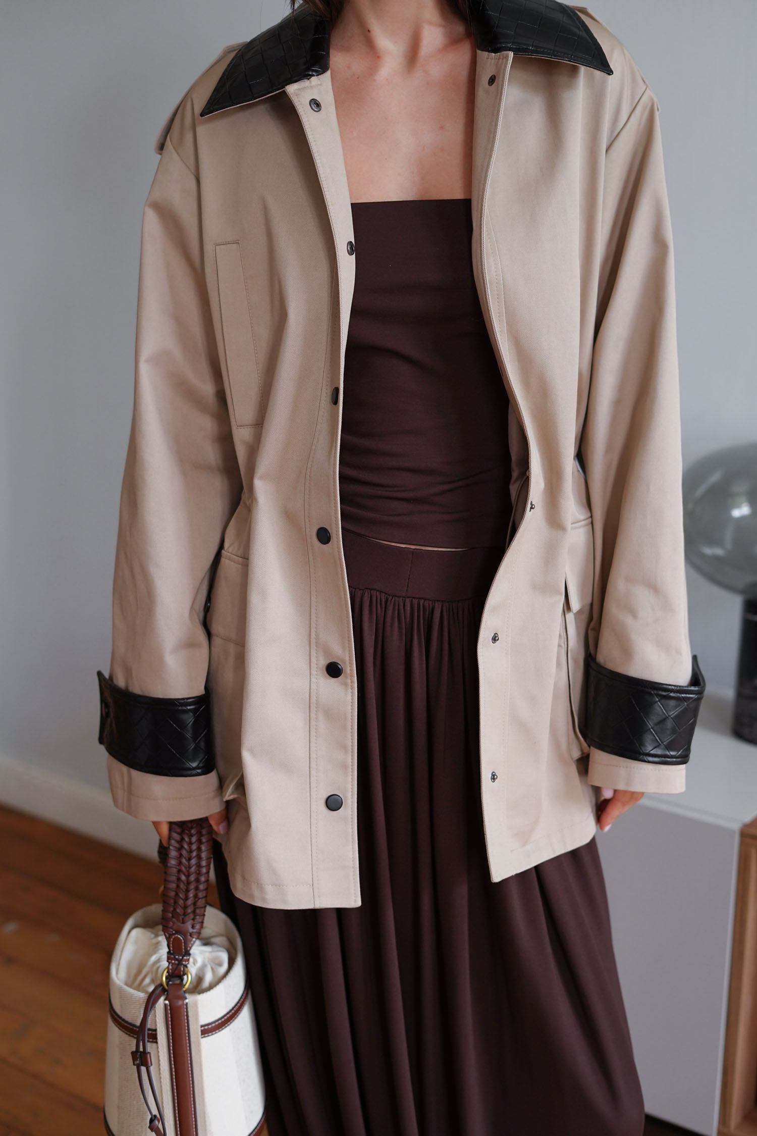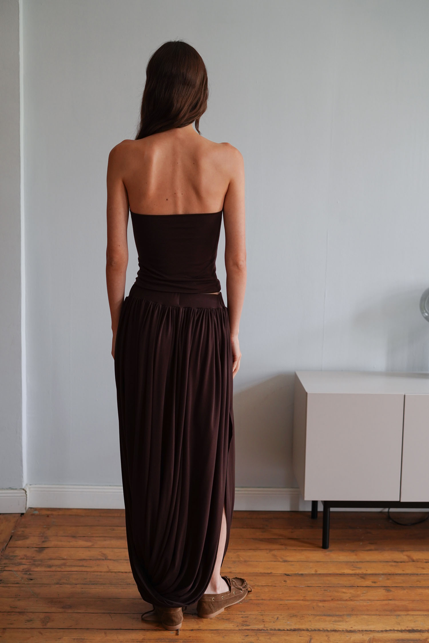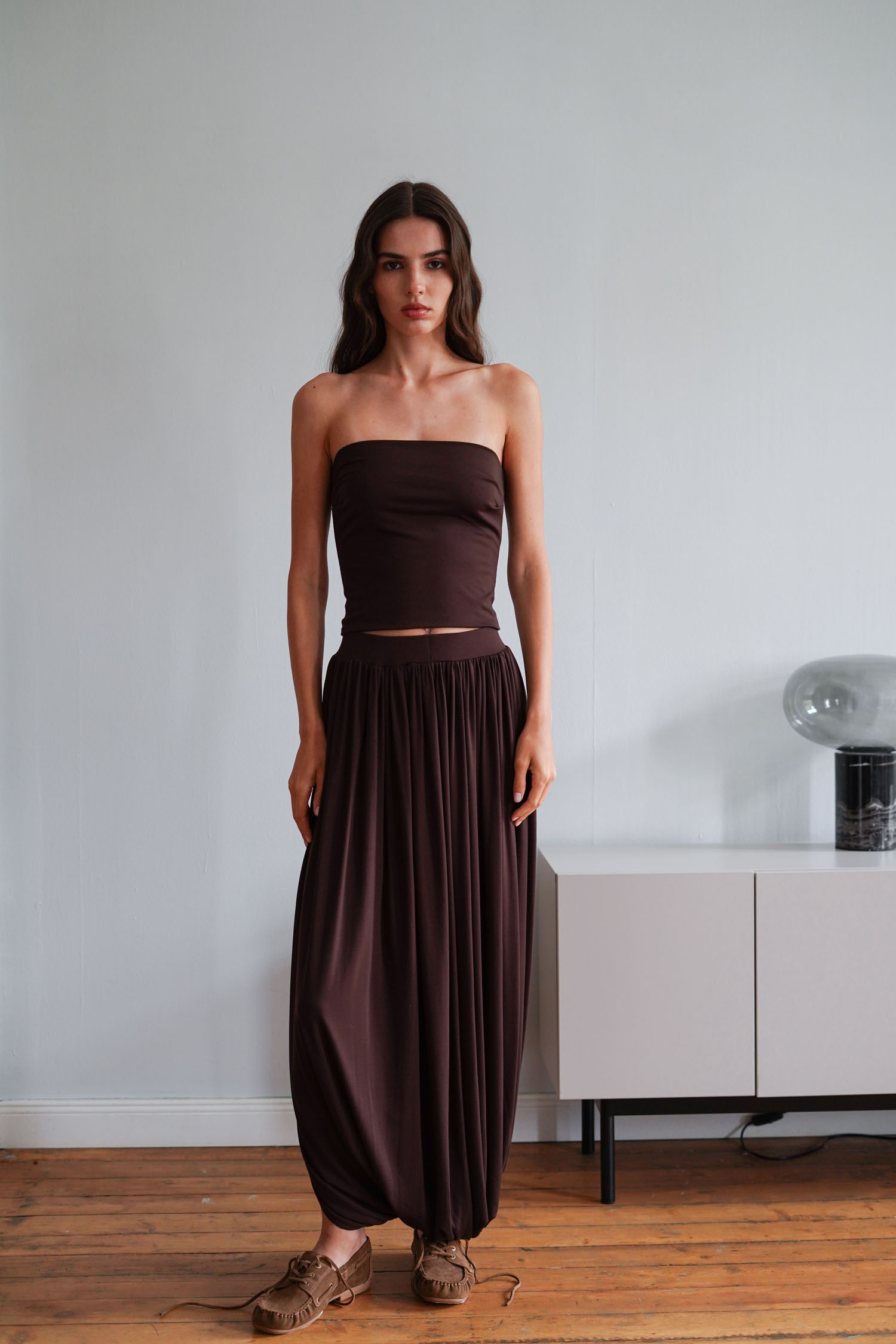 Подовжений жіночий топ-бандо шоколадного відтінку.