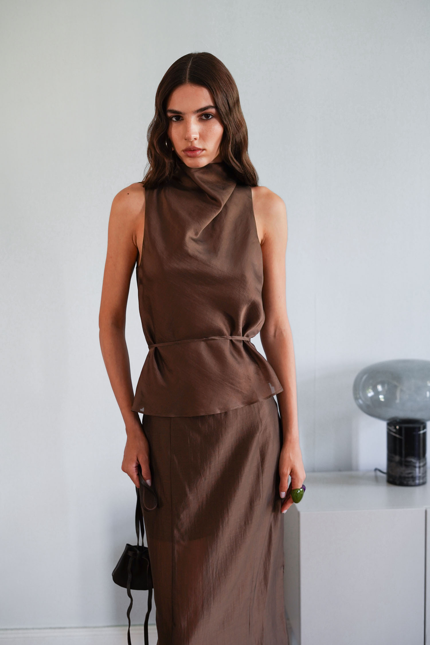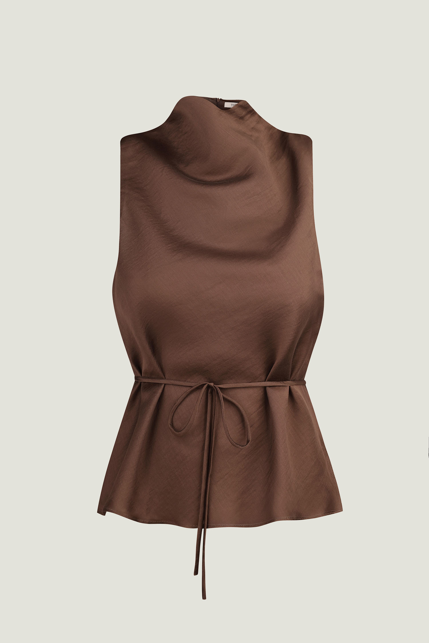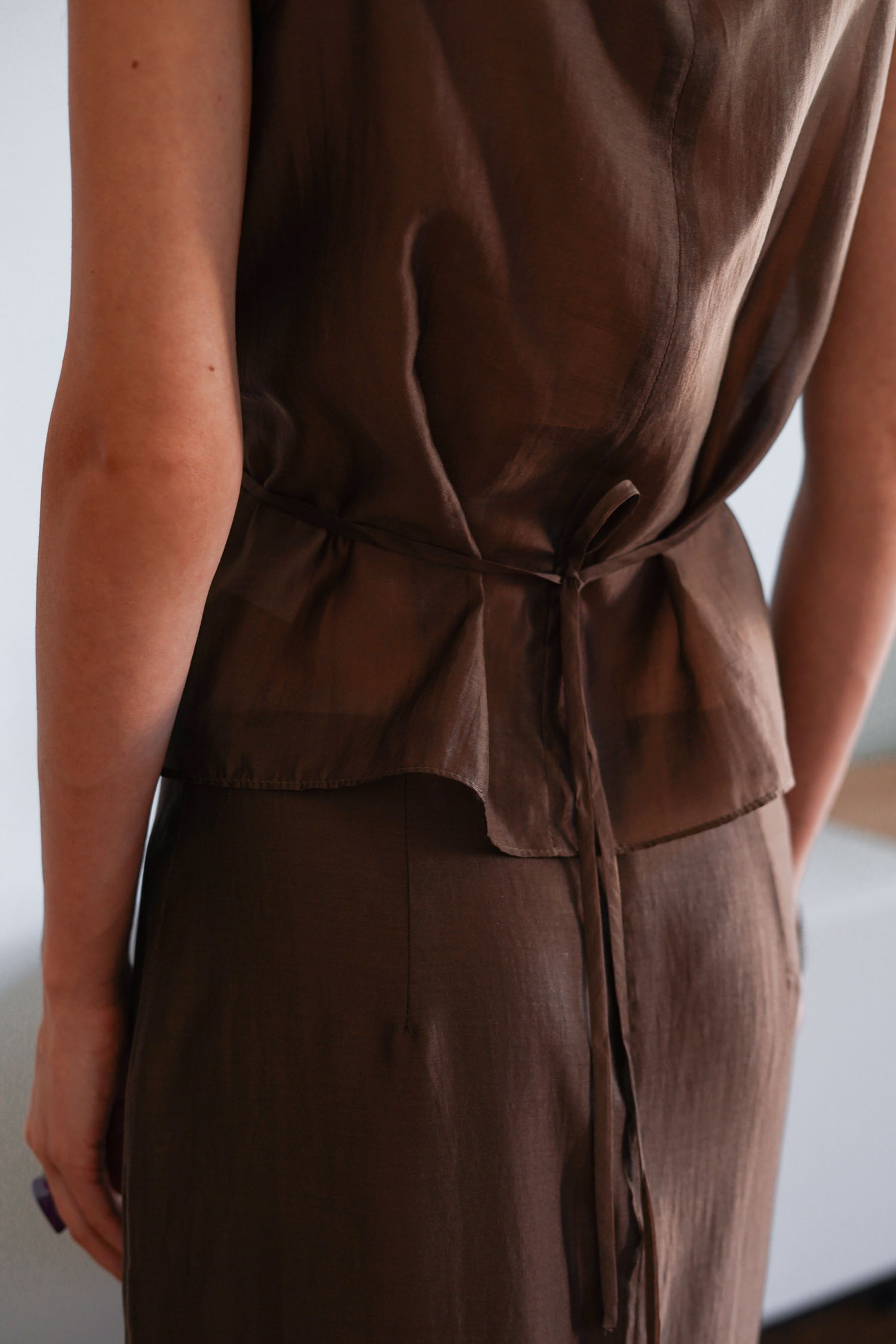 Топ із тенселу з тонким поясом шоколадний