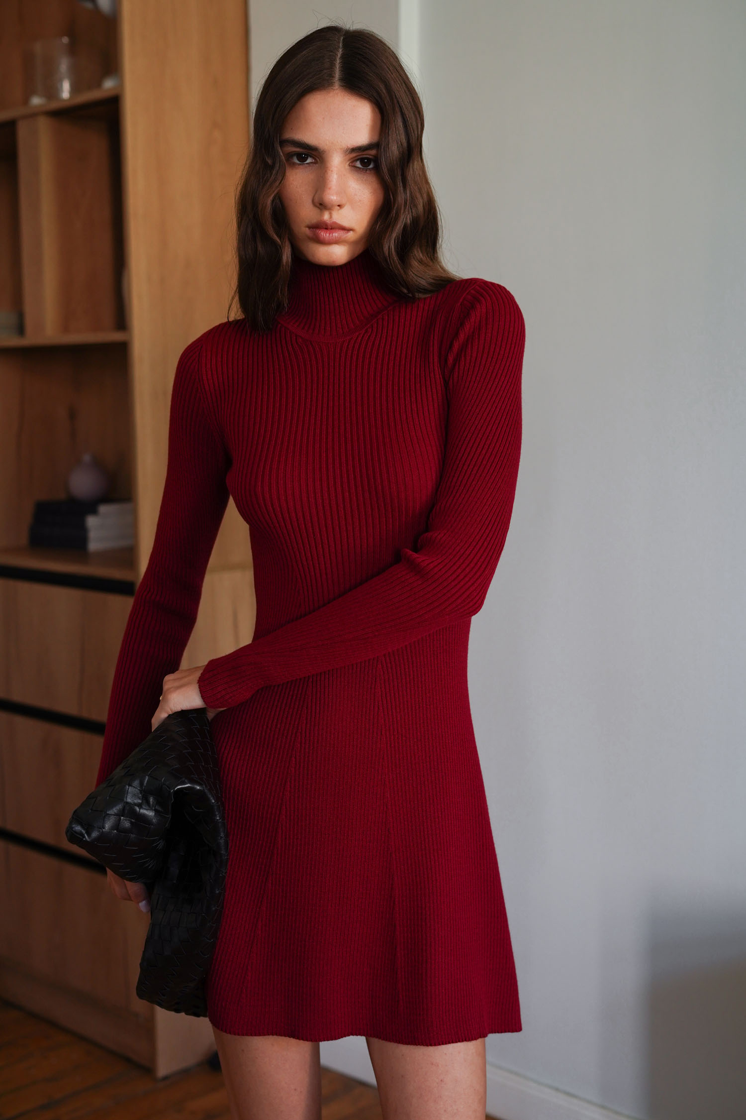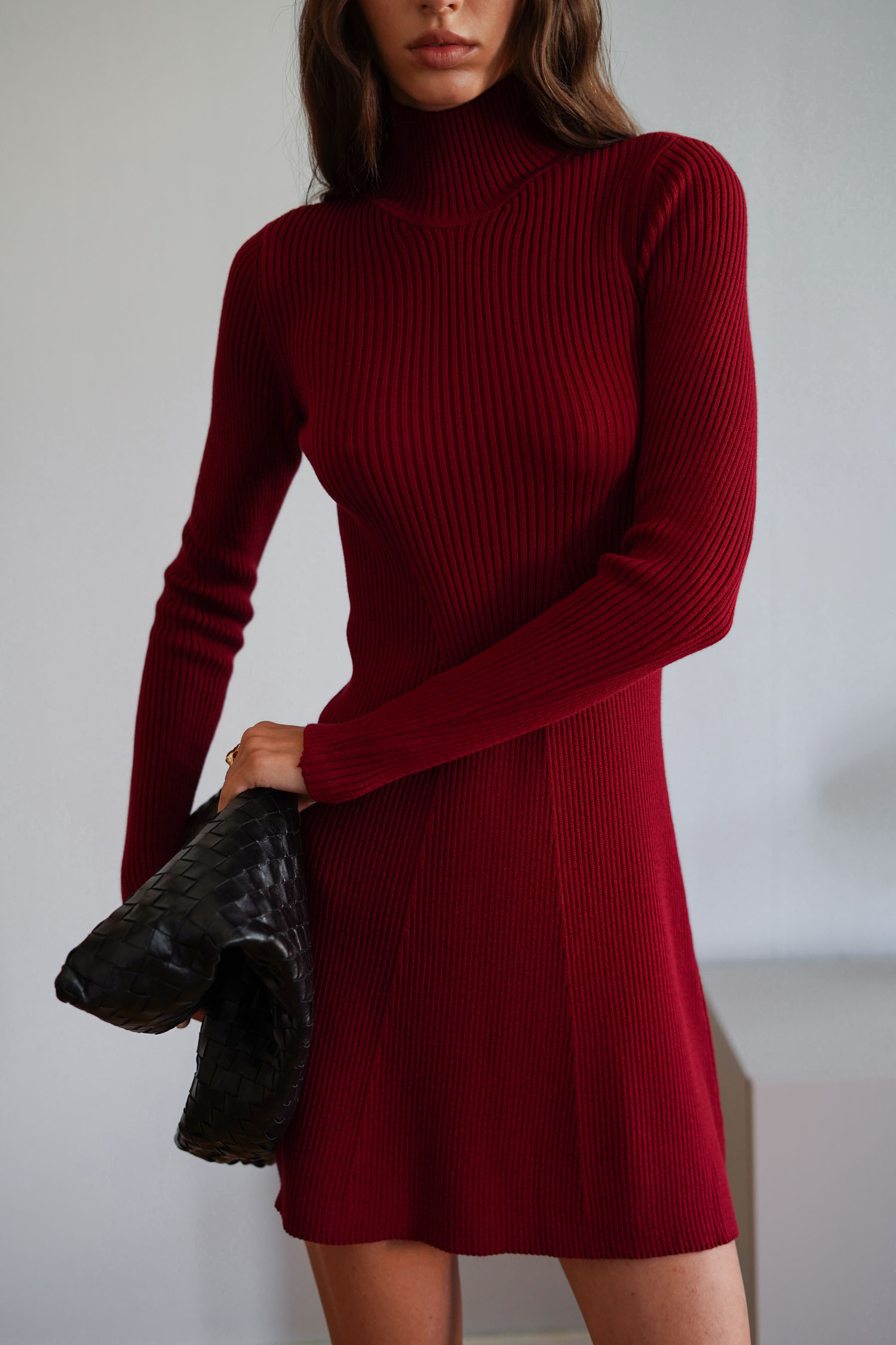 ДоставкаМіні‑сукня з бавовняної пряжі в глибокому бордовому тоні. Має довгі рукави і високу горловину. Тканина з ребристою фактурою. Приталений крій підкреслює лінію талії. Підходить для осіннього сезону. Бавовняна пряжа забезпечує комфорт при носінні.