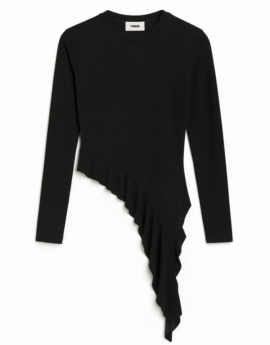 Лонгслів з рюшами — елегантна базова річ із трендовим асиметричним низом і м’якими рюшами, які додають легкості та жіночності. Завдяки складу тканини лонгслів приємний до тіла, добре тягнеться, тримає форму та майже не мнеться. Ідеально поєднується як з денімом, так і зі спідницями, підходить для образів у стилі casual або smart.