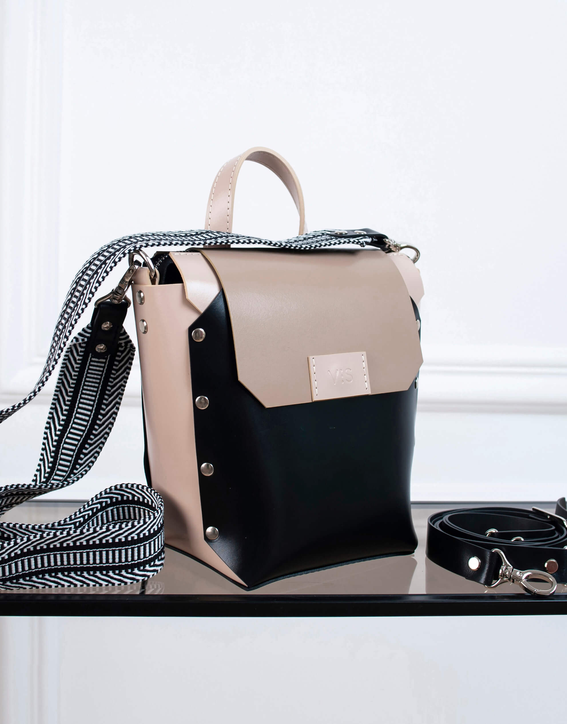 Корпус виконаний зі шкіри українського виробництва. Основне відділення закривається на кришку-клапан і магніт, а також блискавку. Усередині рюкзак має одне відділення та кишеньку з повсті. Розмір дна 15*13 см. Висота 21 см. Ширина вгорі 21 см.