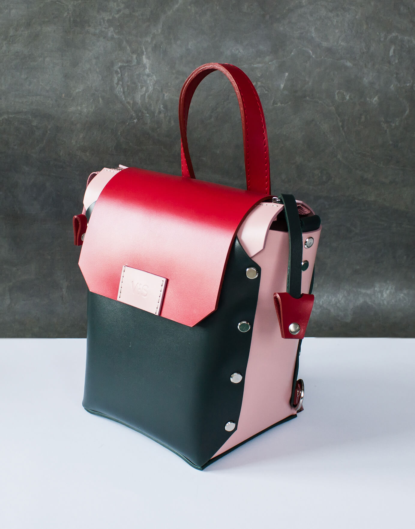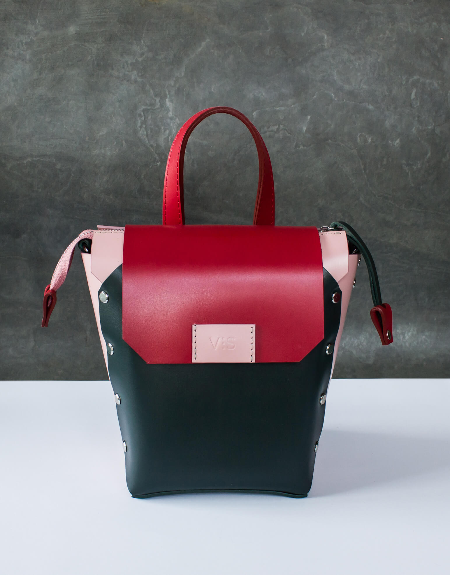 Корпус виконаний зі шкіри українського виробництва. Основне відділення закривається на кришку-клапан і магніт, а також блискавку. Усередині рюкзак має одне відділення та кишеньку з повсті. Розмір дна 15*13 см. Висота 21 см. Ширина вгорі 21 см.