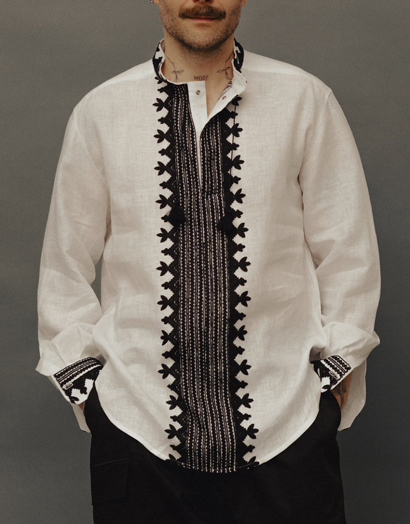 Вишивана сорочка Гетьман біла з чорною вишивкою