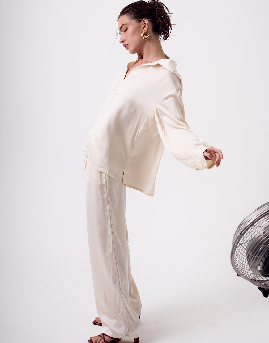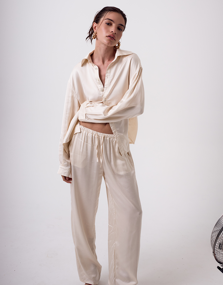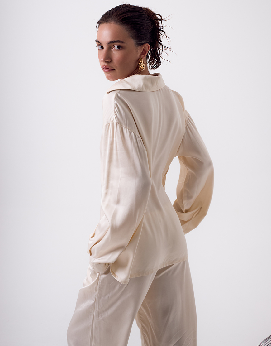 Доставка впродовж 2-9 робочих днівНевимушена, як ранкова прогулянка босоніж. Ця сатинова сорочка легко лягає на тіло, ніжно блищить на світлі й дарує відчуття свободи. Те, що хочеться носити і вдома, і на місто.