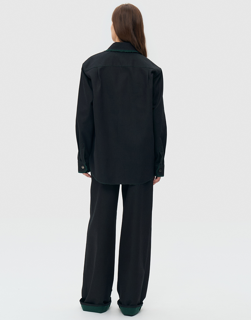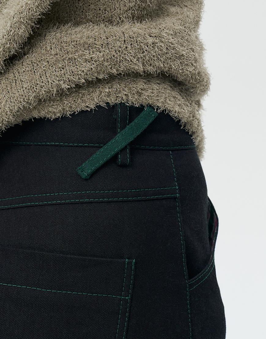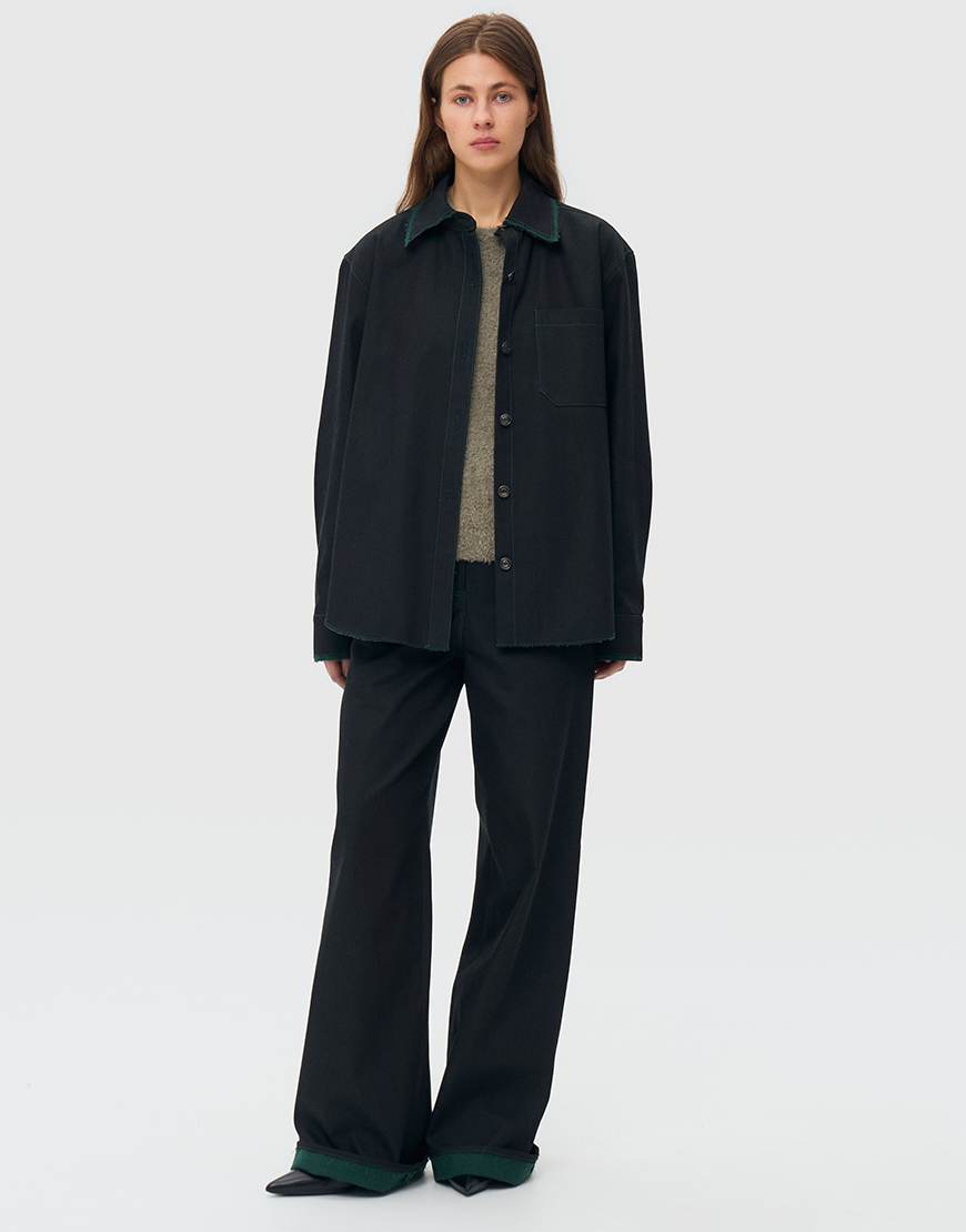 Доставка впродовж 2-5 робочих днівДжинси з підворотом прямого крою з середньою посадкою, оздоблені металевим ґудзиком на голівці і синьою окантовкою, двома бічними кишенями, двома накладними кишенями ззаду. Джинс не прався та не оброблювався, колір та оздоблення змінюються під час носіння та після прання.