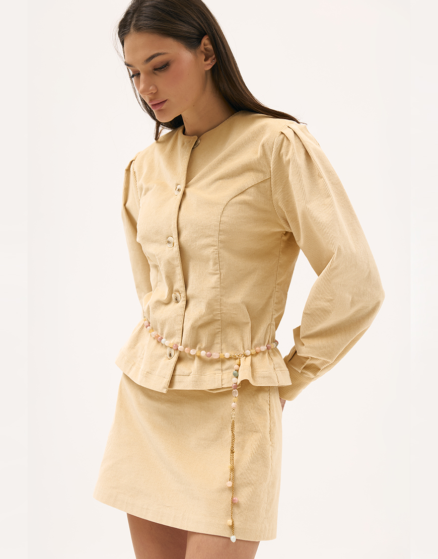 Код товару: 452023Вельветова спідниця міні в пісочному кольорі
