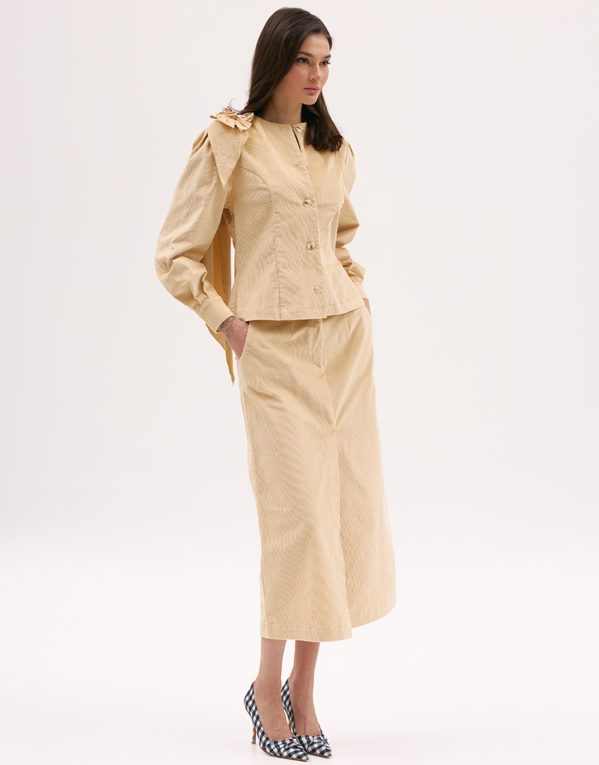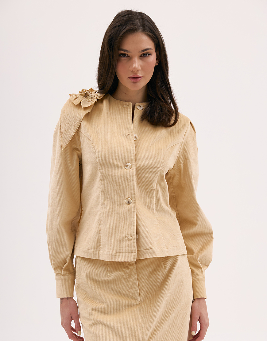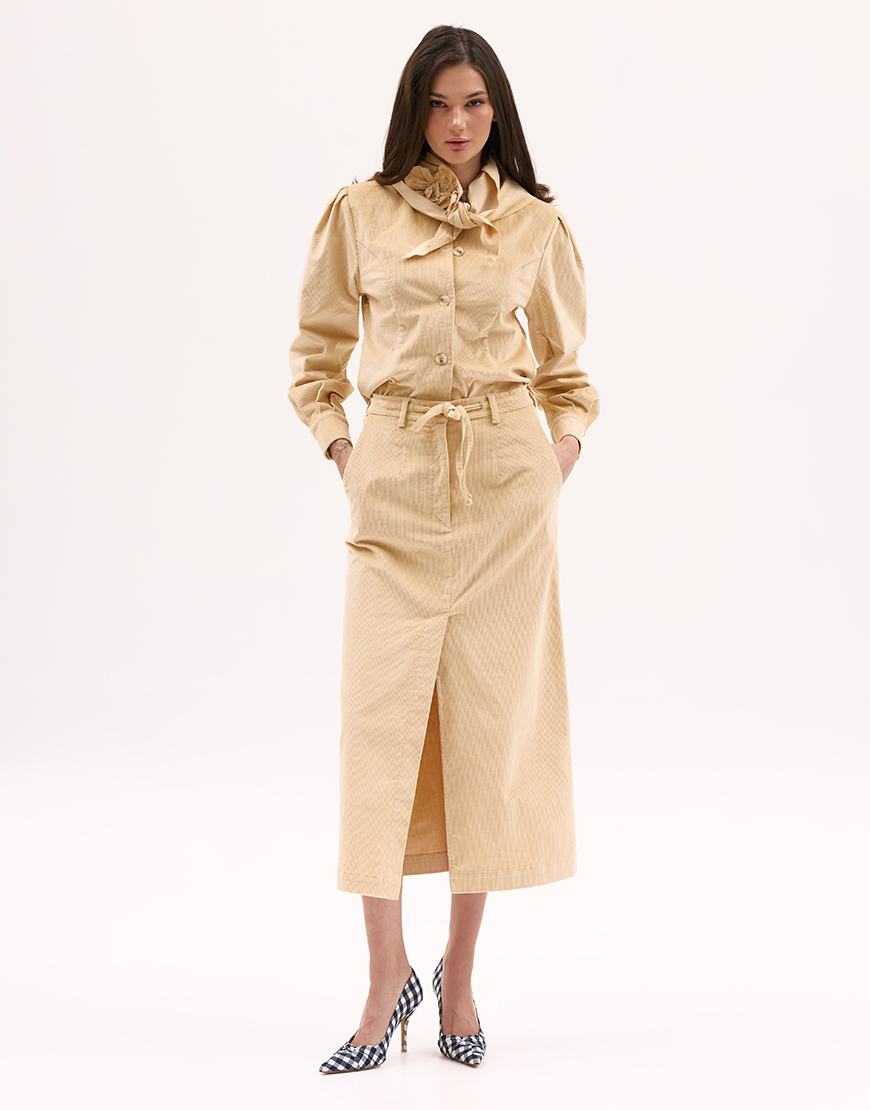 Код товару: 452028Сорочка з хустиною з вельвету в пісочному кольорі