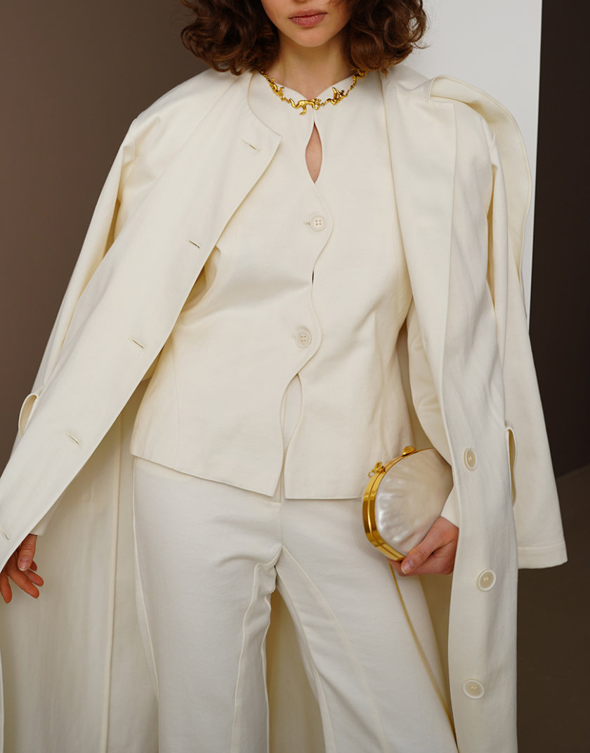 Код товару: 430055Приталений структурний молочний жакет з бавовни